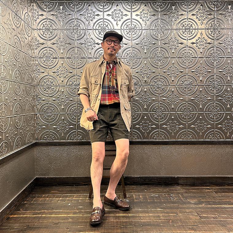 170センチ68キロの体型で普段は31インチ位をベースにパンツのサイズを選びます。こちらのブッシュショーツはMサイズで適度なゆとりがある丁度良いサイズです。ストレッチ入りのコーデュロイ生地を採用したストレスのない穿きやすさ相変わらずの安定感。それでいて幅広いスタイリングに適応してくれる使い回しの良いデザイン。一度穿いたら手放せられないと思いますよ。