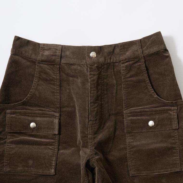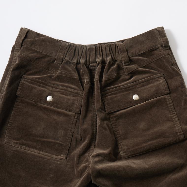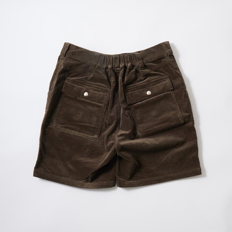 アメリカ発「FELCO(フェルコ)」のCORDUROY BUSH SHORT 21W STRETCH CORDUROY。細かい畝のコーデュロイを使用した、膝上丈のショーツ。70'sのオールドサーフスタイルをベースに、ブッシュパンツをモチーフにしたデザイン。フロントのポケットは、ポケットの上に更にポケットが付いたブッシュパンツらしいデザインで、バックはスナップボタン付きのフラップポケットが二つ付いています。横方向の伸縮性が高いストレッチコーデュロイを採用しており、ウエスト部分もゴムの仕様になっている為、非常に楽な履き心地でストレスフリーに穿いて頂けます。シンプルになる夏のスタイルのアクセントになってくれるアイテムです。