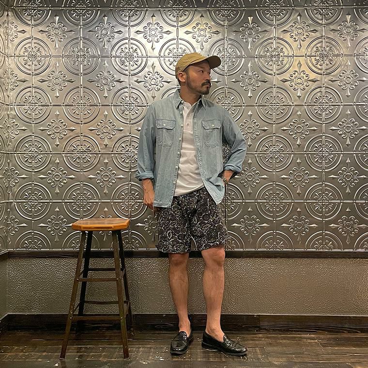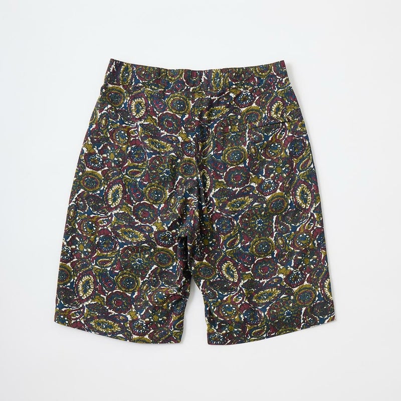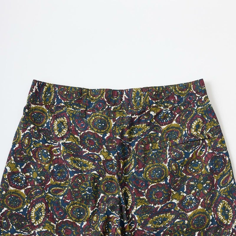 ENGINEERED GARMENTS(エンジニアド ガーメンツ)のSUNSET SHORT COTTON BATIK。今シーズンのコレクションを象徴するバティックプリント素材を使用したサンセットショーツ。フロントにタックを入れ膨らみを持たせて動きやすいリラックス感のあるシルエットのショーツ。ウエストはベルトループ+内側にコード付きでサイズ調節が可能。両サイドのポケットとバックは左側のみジップポケットが配置されたシンプルなデザインのショーツ。バティックプリントがシンプルなスタイリングのアクセントになってくれる1本です。