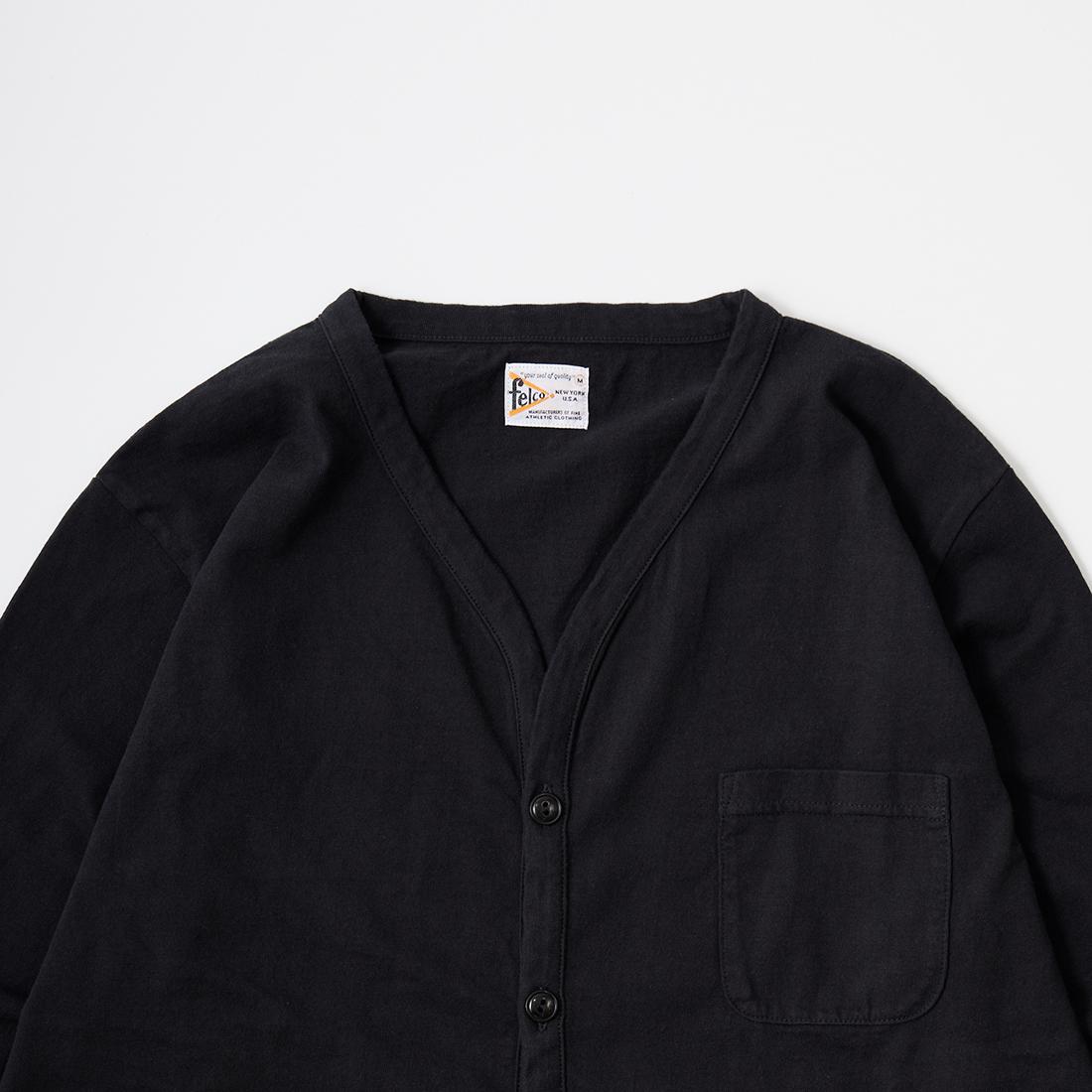 他の画像を見る メンズ バインダーVネック 7オンス シングル ジャージー カーディガン 日本製 FELCO (フェルコ) L/S BINDER V NECK CARDIGAN W/POCKET 7oz 16SINGLE RUFFY JERSEY - BLACK 販売価格 ¥ 10,780 税込 お気に入りに登録する