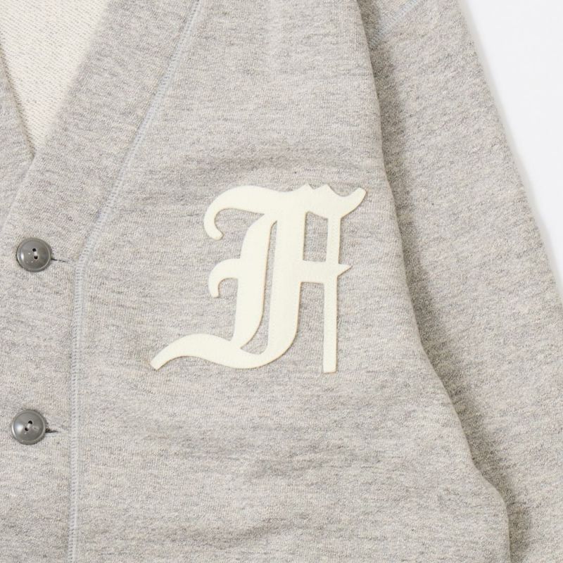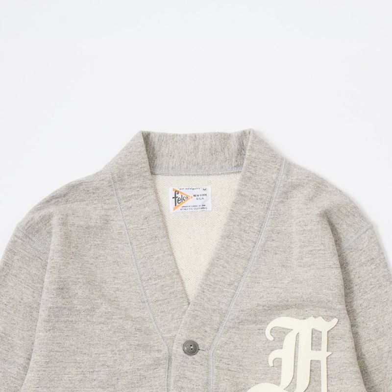 FELCO (フェルコ) 12oz TERRY V NECK BUTTON LETTERED CARDIGAN W/OLD FONT F FELT - TWISTED GREY