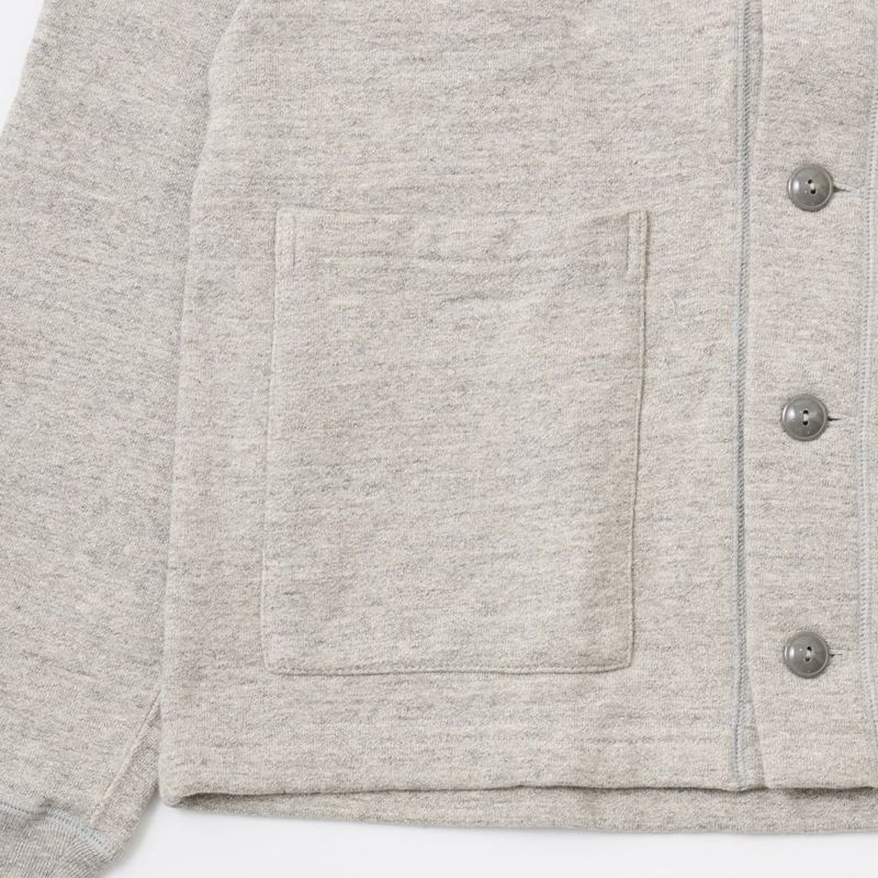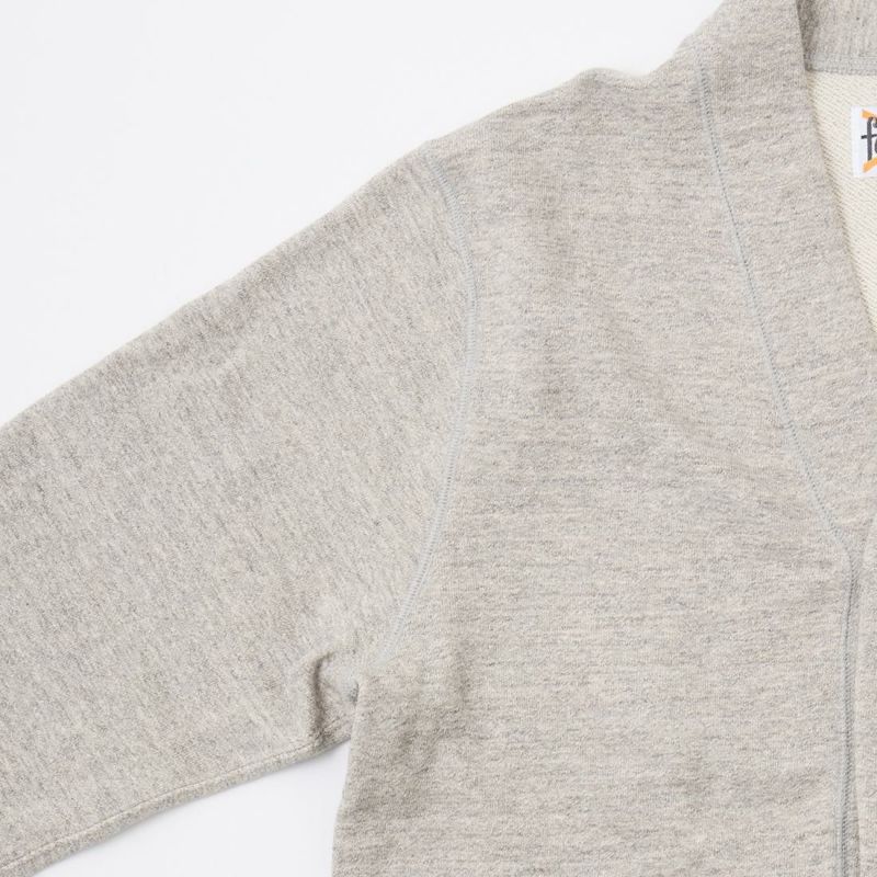 5. FELCO (フェルコ) 12oz TERRY V NECK BUTTON LETTERED CARDIGAN W/OLD FONT F FELT - TWISTED GREY