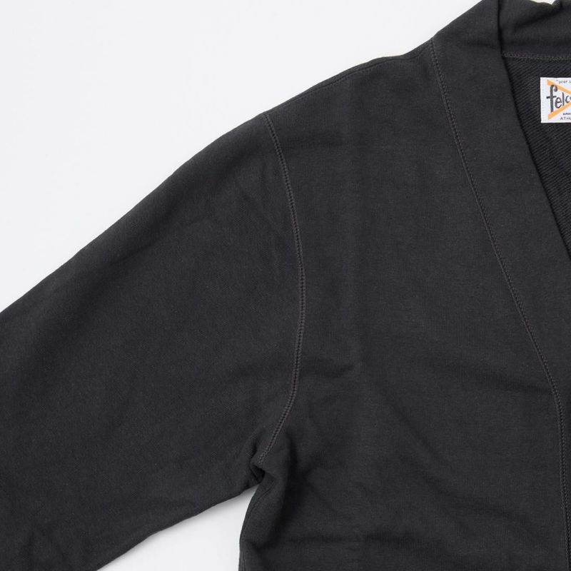 5. FELCO (フェルコ) 12oz TERRY V NECK BUTTON LETTERED CARDIGAN W/OLD FONT F FELT - BLACK