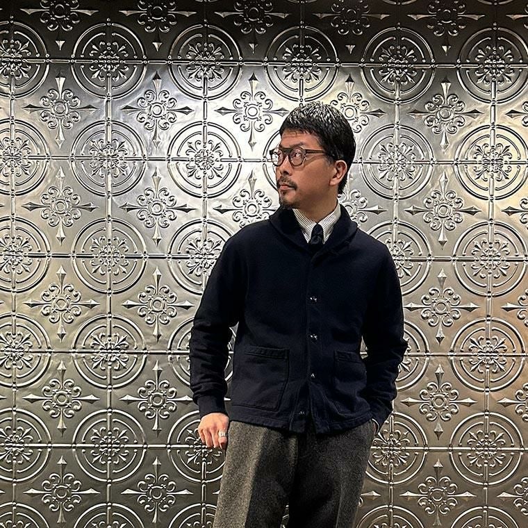170センチ68キロやや肩幅広めの私の体型でサイズ選びはMサイズで個人的には丁度良いサイズ感です。身幅、アームホールは程よくゆとりのあるシルエット。肩幅はやや広めのつくりとあって袖丈はやや長めです。このサイズであればインナーにシャツやカットソーぐらいの軽めのアイテムを着て羽織ってもストレスなく着れる着用感です。よく見かける至ってシンプルなショールカラーのカーディガンタイプ。ですが、フェルコらしいヴィンテージ感漂う長めに仕立てたリブの雰囲気にガチっとしたコシのある柔らかい生地感を採用した耐久性に優れた着心地の良い1着。春秋シーズンはアウター使いとして、寒い冬シーズンはインナー使いとして。使い勝手の良さを考えるとかなり重宝できるアイテムです。