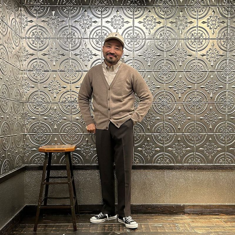 170センチ68キロやや肩幅広めの私の体型でサイズ選びは個人的な好みから考えると40サイズが丁度良いサイズ感です。シャツの上に着て38でジャストサイズよりの着用感です。40サイズで程よくゆとりを持たせた着用感です。どちらのサイズでも着れなくはなかったですから、どう着たいかでサイズをお選びになって頂いたほうが良いのではないかと思いましたね。中厚のウールカシミア混紡とあって雰囲気、肌触り、着心地は抜群。シャツの上に一枚羽織るだけでもいいですし、ジャケットやアウターのインナーとしても使いやすい厚さ。まさに万能カーディガン。流行に左右される事なく長く着て頂けるアイテムです。