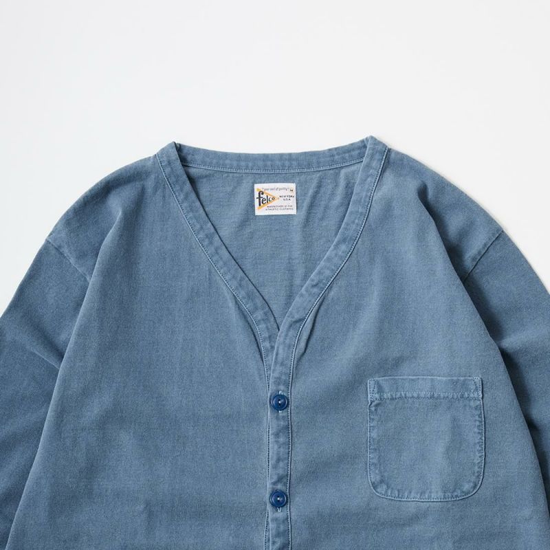 FELCO (フェルコ) L/S BINDER V NECK CARDIGAN W/POCKET 7oz 16SINGLE RUFFY JERSEY - PG ROYAL