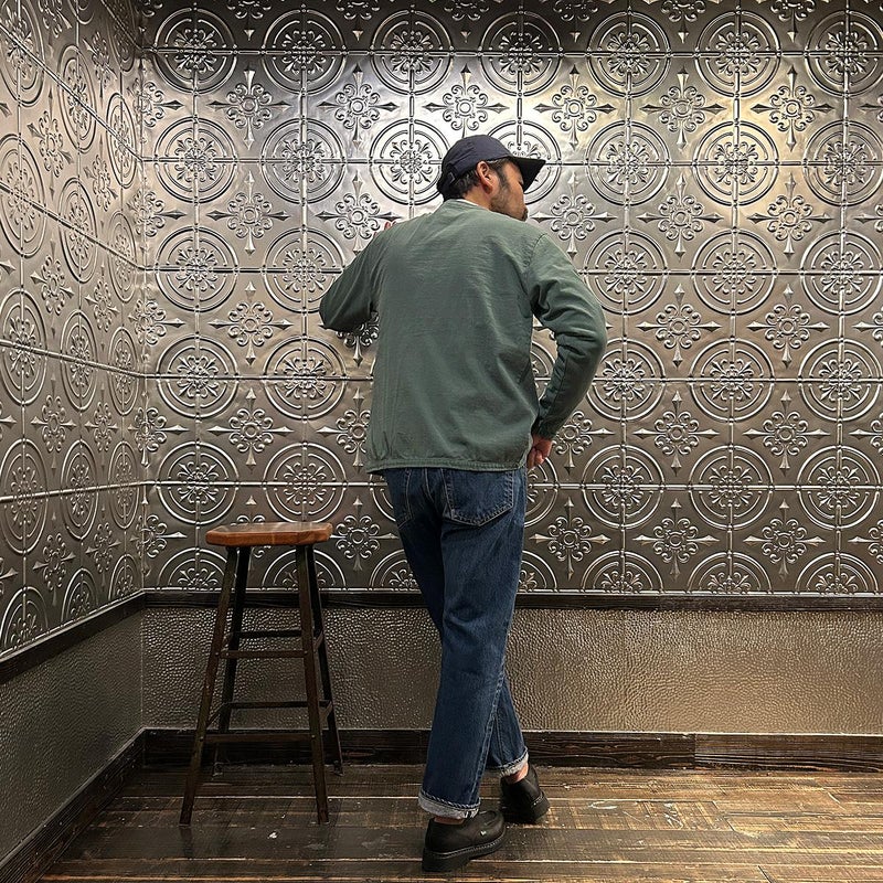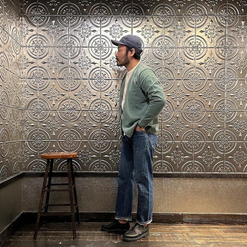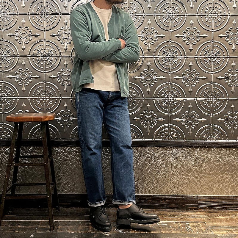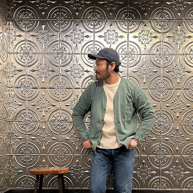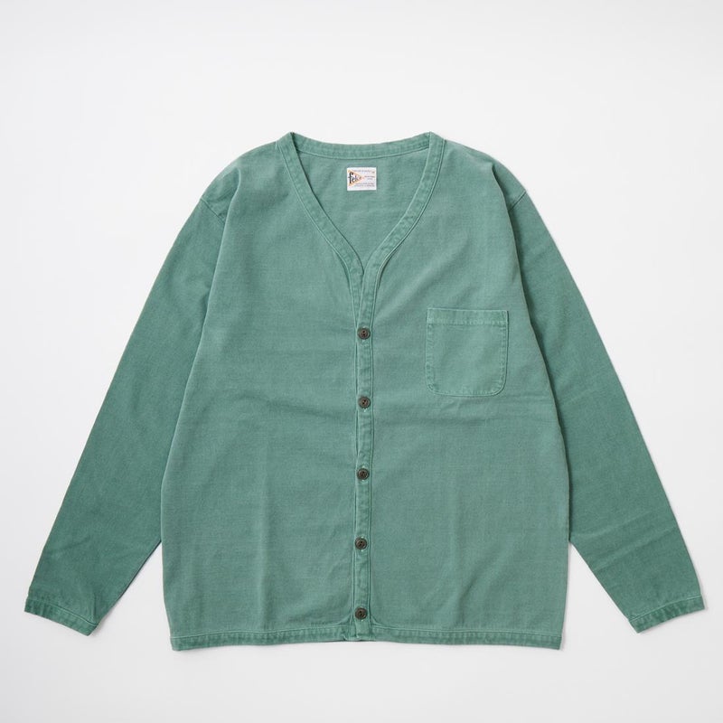 5. FELCO (フェルコ) L/S BINDER V NECK CARDIGAN W/POCKET 7oz 16SINGLE RUFFY JERSEY - PG GREEN
