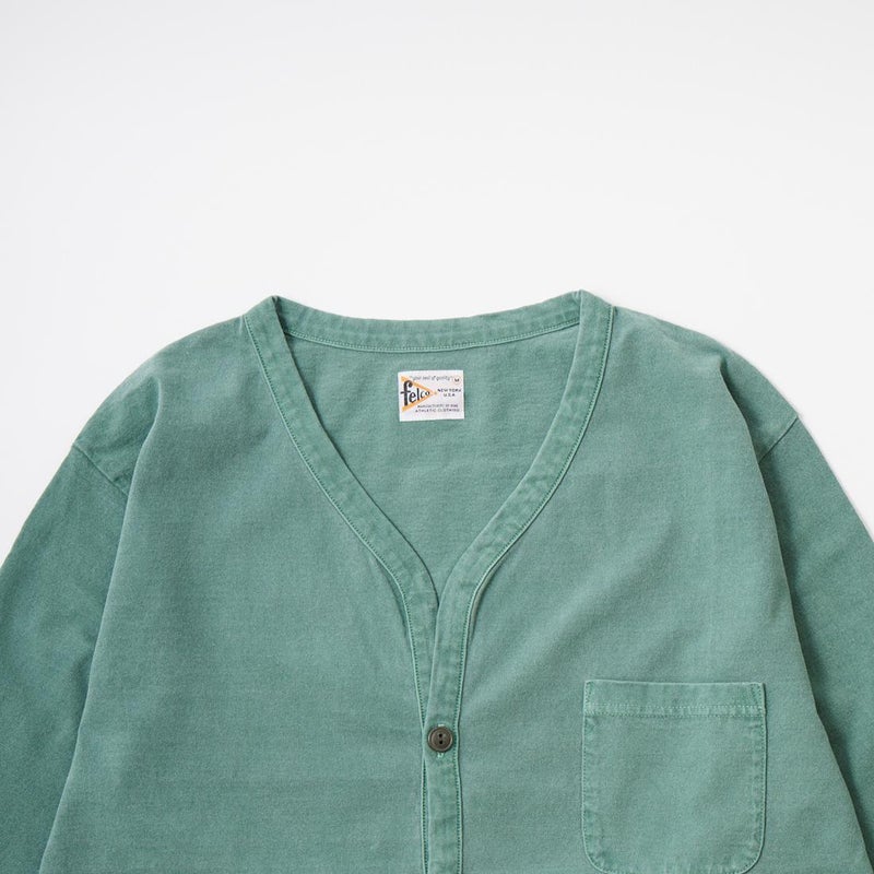 7. FELCO (フェルコ) L/S BINDER V NECK CARDIGAN W/POCKET 7oz 16SINGLE RUFFY JERSEY - PG GREEN