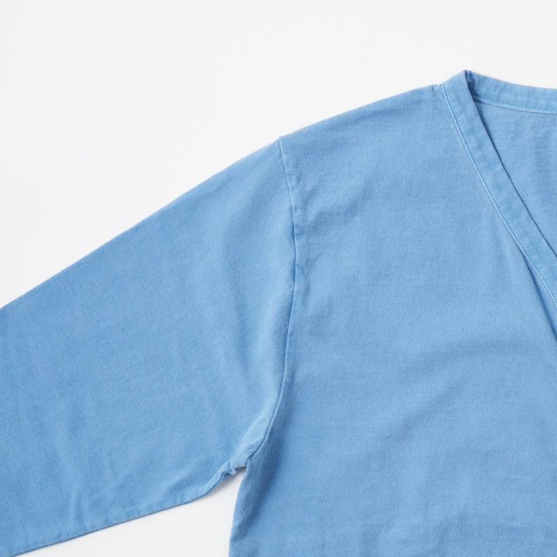 ピグメント加工 メンズ バインダーVネック 7オンス シングル ジャージー カーディガン 日本製