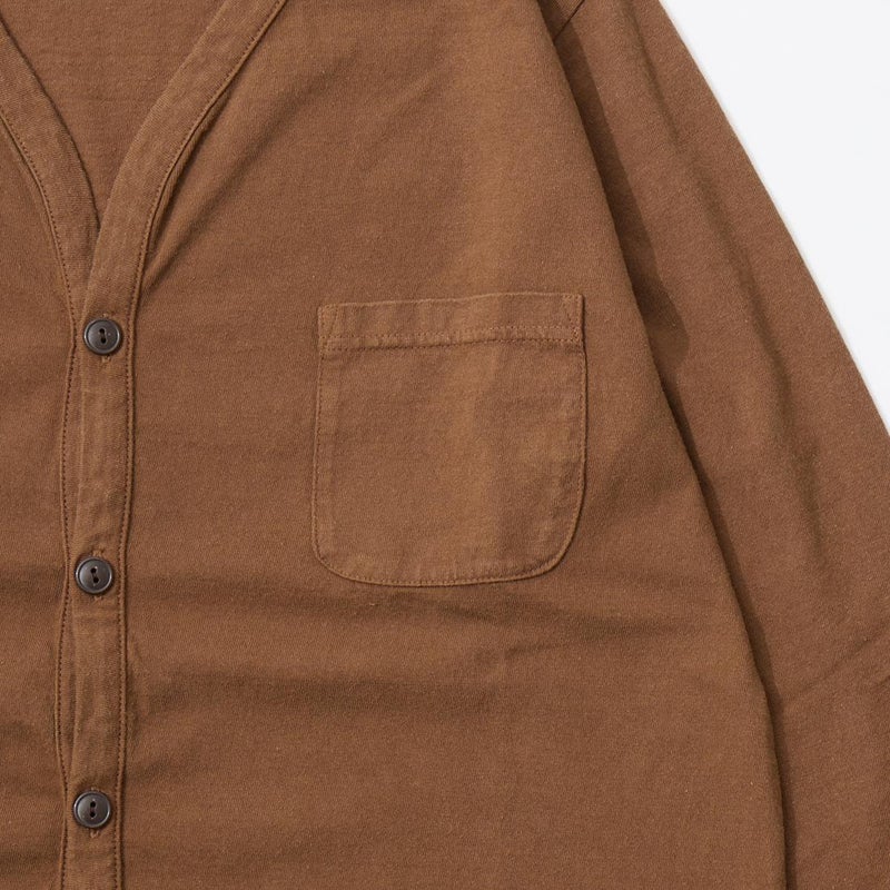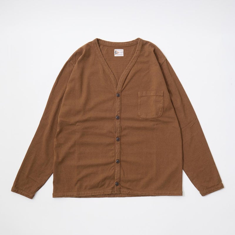 FELCO (フェルコ) L/S BINDER V NECK CARDIGAN W/POCKET 7oz 16SINGLE RUFFY JERSEY - PGR BROWN