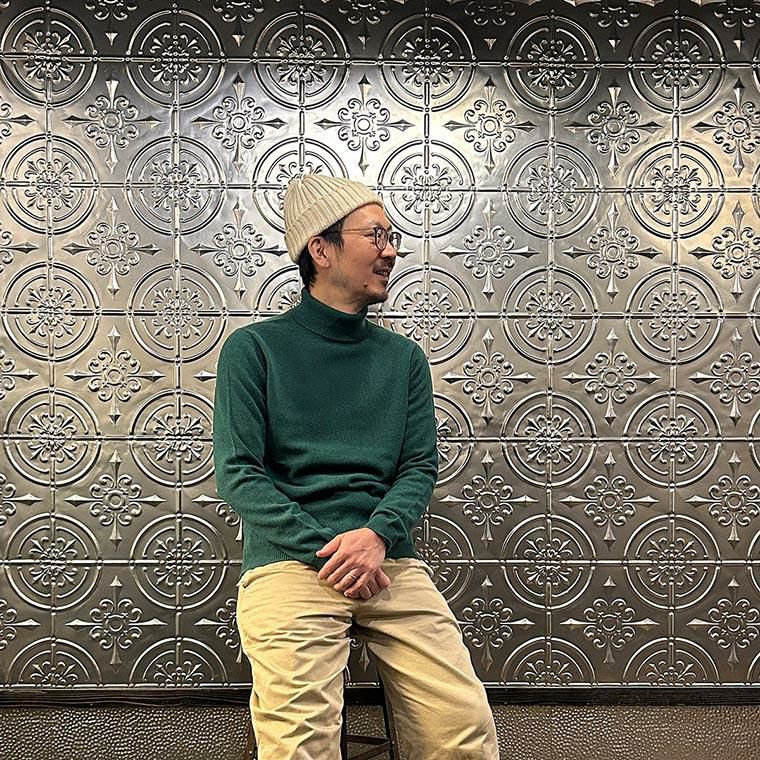 WILLIAM LOCKIE (ウィリアム ロッキー) LAMBSWOOL JUMPER ROLL NECK SWEATER - NAVY