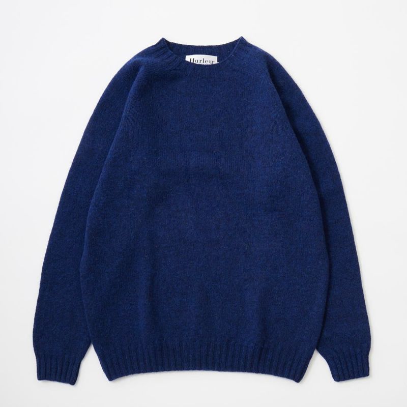 HARLEY OF SCOTLAND (ハーレーオブスコットランド) PURE NEW WOOL SADDLE SHOULDER CREW NECK SWEATER - NIGHTSKY