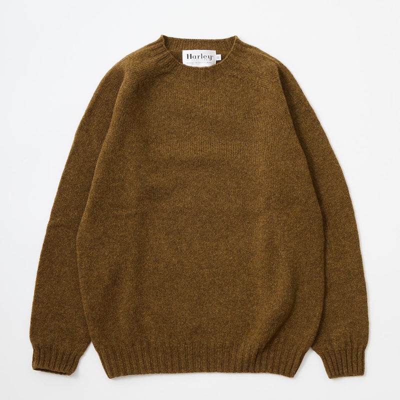 定番展開ブランドとなっているスコットランドのハーレーが今季も入荷してきました!シンプルでスタイルを選ばない使い勝手の良いクルーネックのニット。シンプルなアイテムですがストレスを感じないシームレス製法など拘りの感じられる1枚に仕上がっています。柔らかいウール素材を使用しているので着用感も抜群。従来のモノより着丈を気持ち長めに変更した別注モデルになっているのでパンツとのバランスが取り易くなっているのでより使い勝手の良い1枚になっているかと思います。サイズはインナーにシャツ1枚程度で42でややタイトなサイズ感になり44で程良くゆとりのあるニットアイテムらしいサイズ感になります。