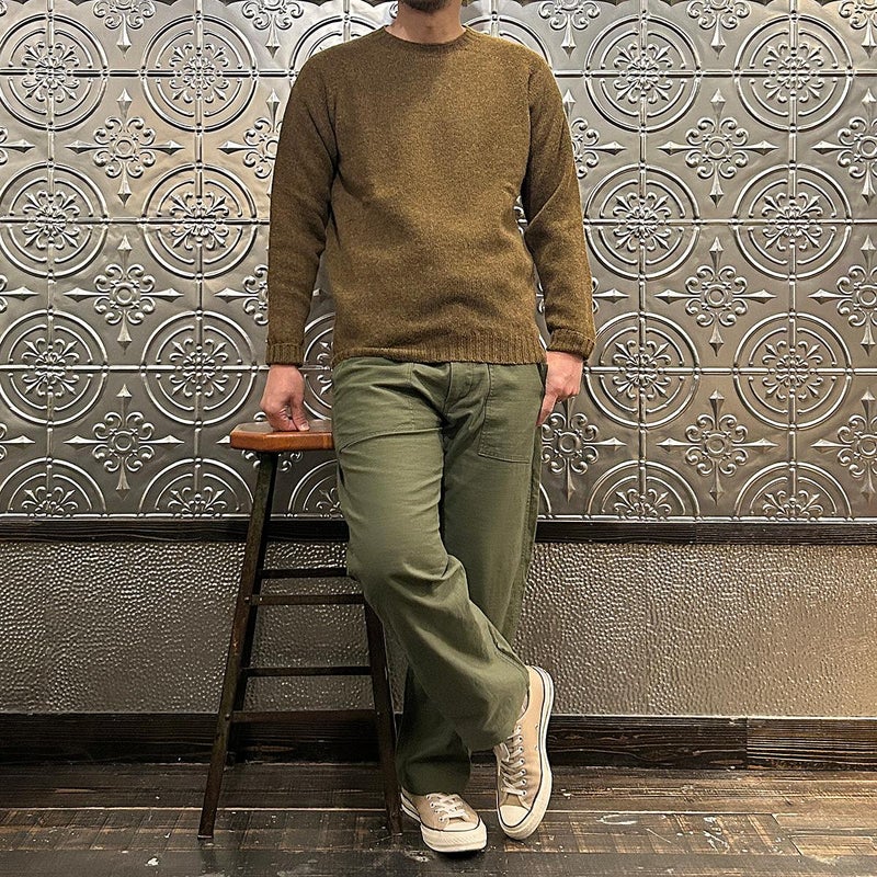 確かなクオリティとインポートブランドながらもコストパフォーマンスに優れたアイテムを数多くリリースするHARLEY OF SCOTLAND(ハーレーオブスコットランド)。縫い目のない一つ凪で作られるシームレス製法が特徴。ウールの温かみが感じられるミドルゲージの編地。こちらは着丈、袖丈を2.5センチ程度長く変更してもらった別注モデルになります。
