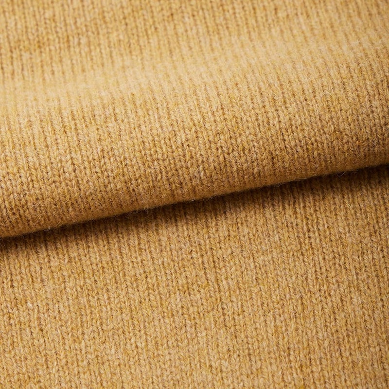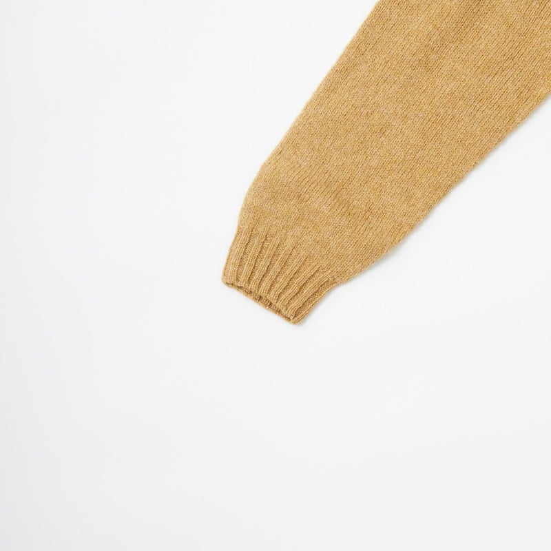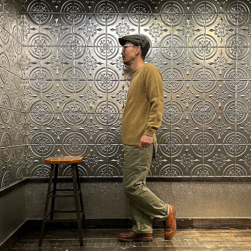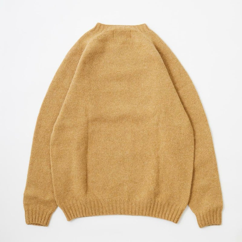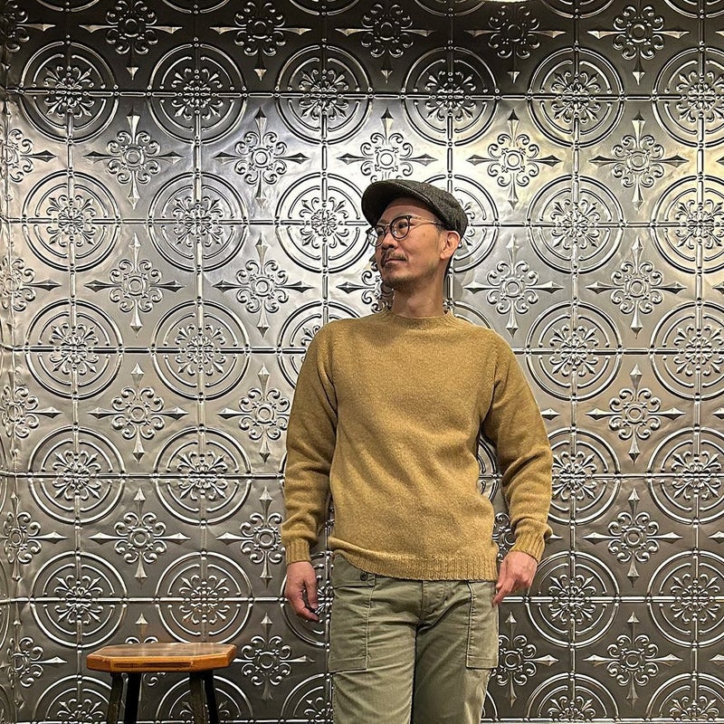 確かなクオリティとインポートブランドながらもコストパフォーマンスに優れたアイテムを数多くリリースするHARLEY OF SCOTLAND(ハーレーオブスコットランド)。縫い目のない一つ凪で作られるシームレス製法が特徴。ウールの温かみが感じられるミドルゲージの編地。こちらは着丈、袖丈を2.5センチ程度長く変更してもらった別注モデルになります。