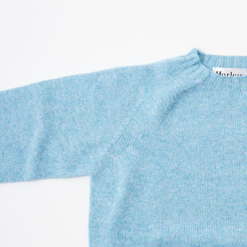 HARLEY OF SCOTLAND (ハーレーオブスコットランド) PURE NEW WOOL SADDLE SHOULDER CREW NECK SWEATER - LOCH BLUE