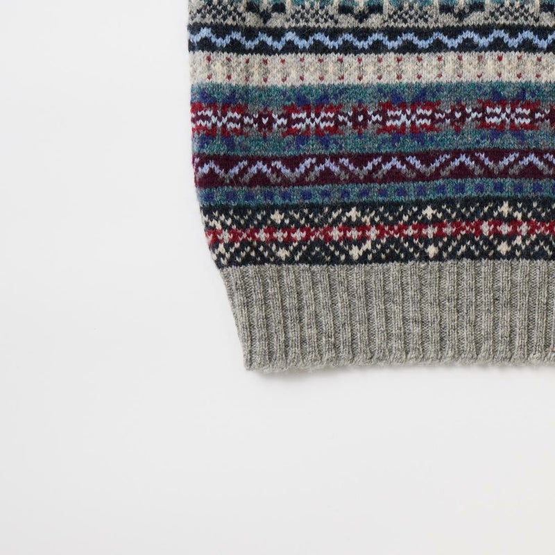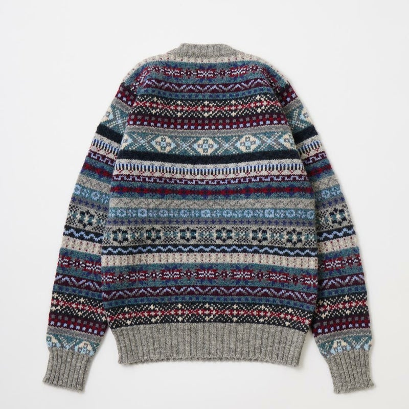 フェアアイル柄 クルーネック ニット メンズ スコットランド製