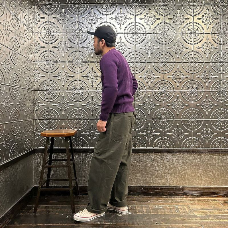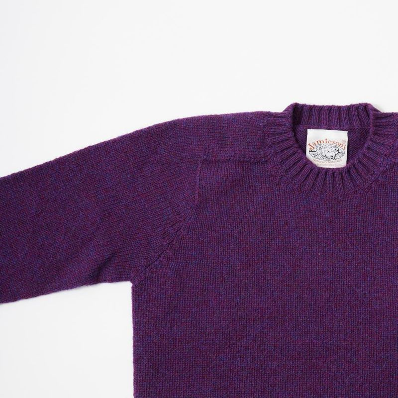JAMIESON'S(ジャミーソンズ)の3PLY PLAIN SADDLE SHOULDER CREW NECK。3本撚りの太い糸で編まれたしっかりとしたシェットランドセーター。肩はラグランスリーブの一種のサドルショルダー。肩部分が平行でラグランスリーブより切り替えの形が角張った形。鞍(サドル)をかけたような見た目が由来。袖と脇のサイドシームが無いホールガーメントで編み上げたシームレス仕様。スタンダードなデザインでスタイルを選ばない使い勝手の良い1着です。