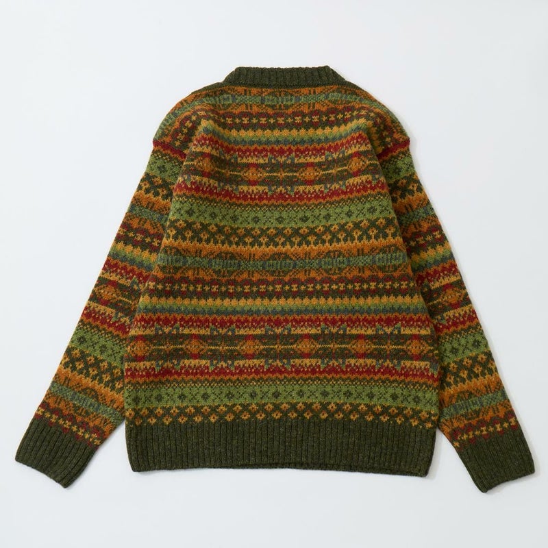 5. 【サンプル品 38サイズ】HARLEY OF SCOTLAND (ハーレーオブスコットランド) SAMPLE ALL OVER FAIRISLE CREW NECK SWEATER 100% PURE NEW WOOL - PINESHADOW