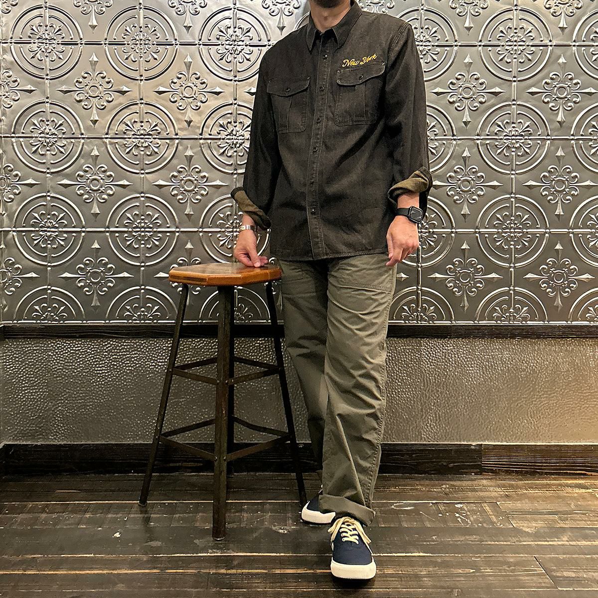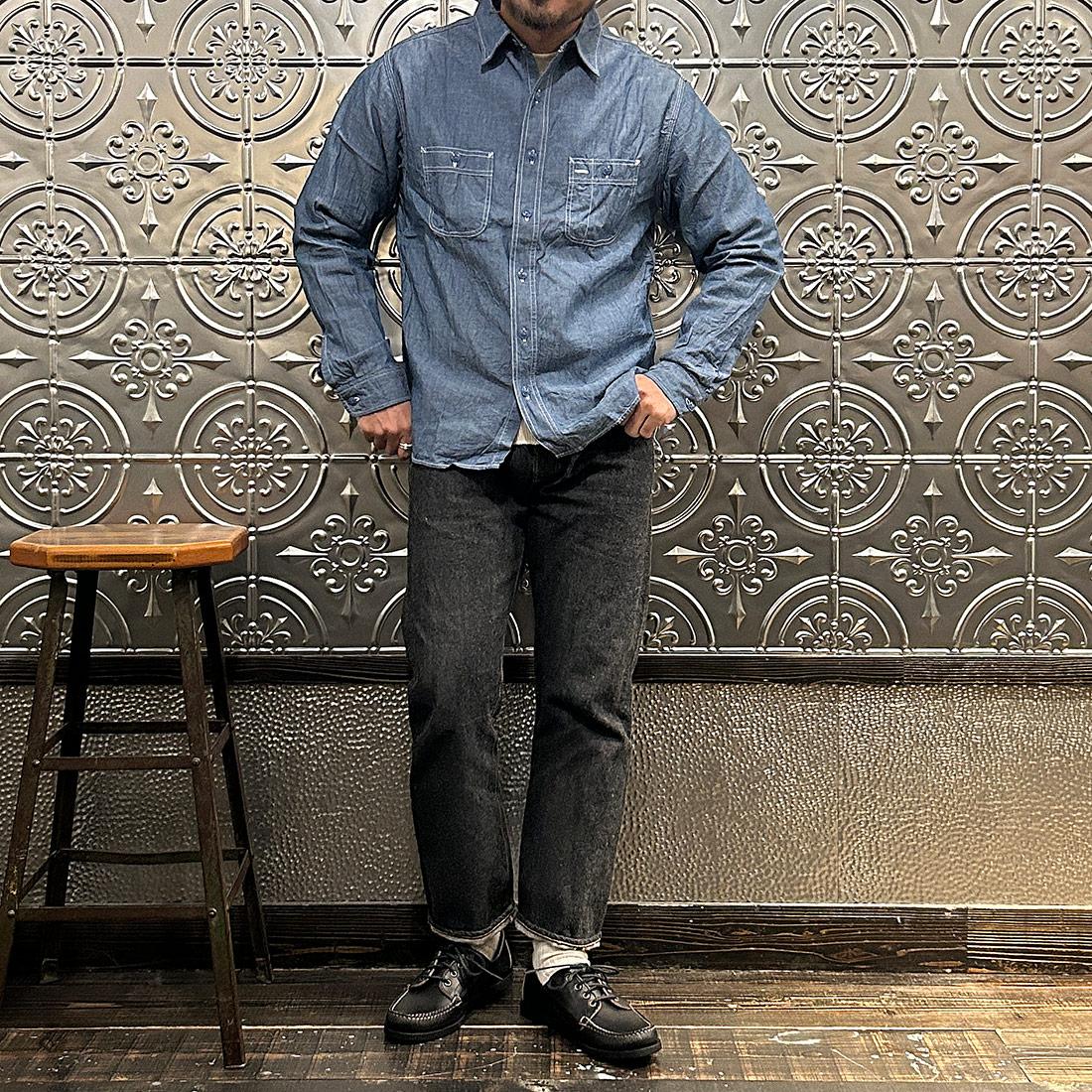 他の画像を見る ワークシャツ ヴィンテージ シャンブレー メンズ 日本製 EMPIRE & SONS (エンパイア アンド サンズ) L/S WORK SHIRT VINTAGE CHAMBRAY - BLACK 販売価格 ¥ 22,000 税込 お気に入りに登録する