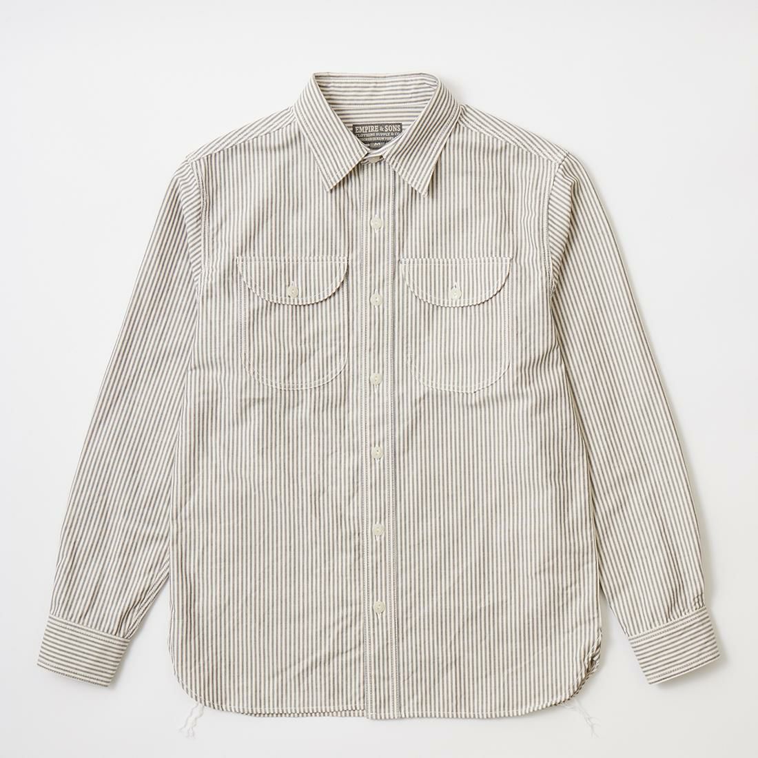 他の画像を見る ストライプ ユーティリティ ワークシャツ オーガニックコットン オックスフォードキャンバス 日本製 EMPIRE & SONS (エンパイア アンド サンズ) L/S UTILITY WORK SHIRT ORGANIC COTTON OXFORD CANVAS - 11 WHITE NAVY STRIPE 販売価格 ¥ 18,480 税込 お気に入りに登録する