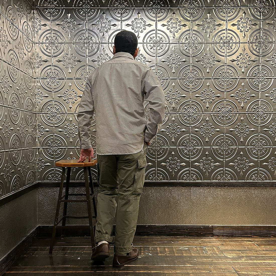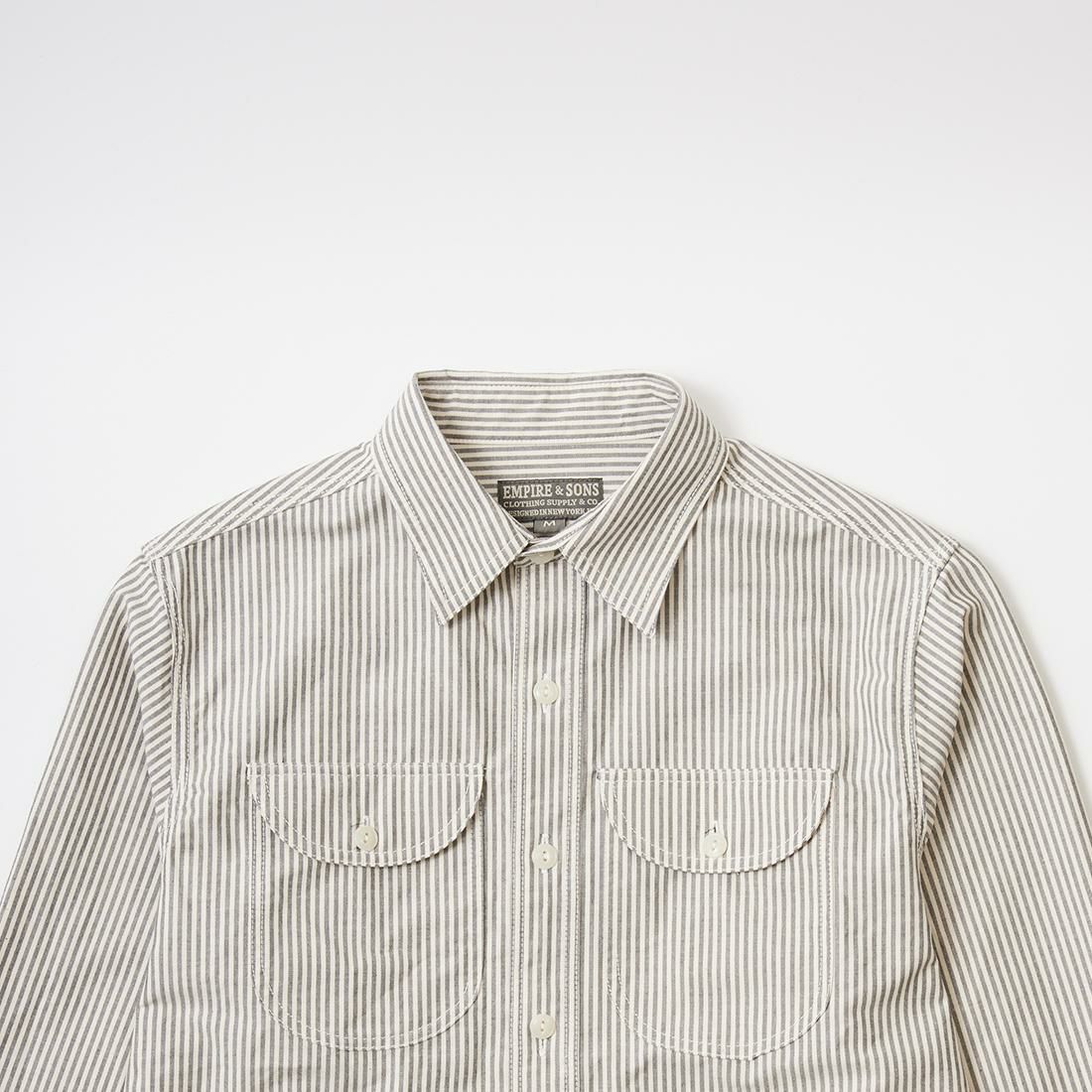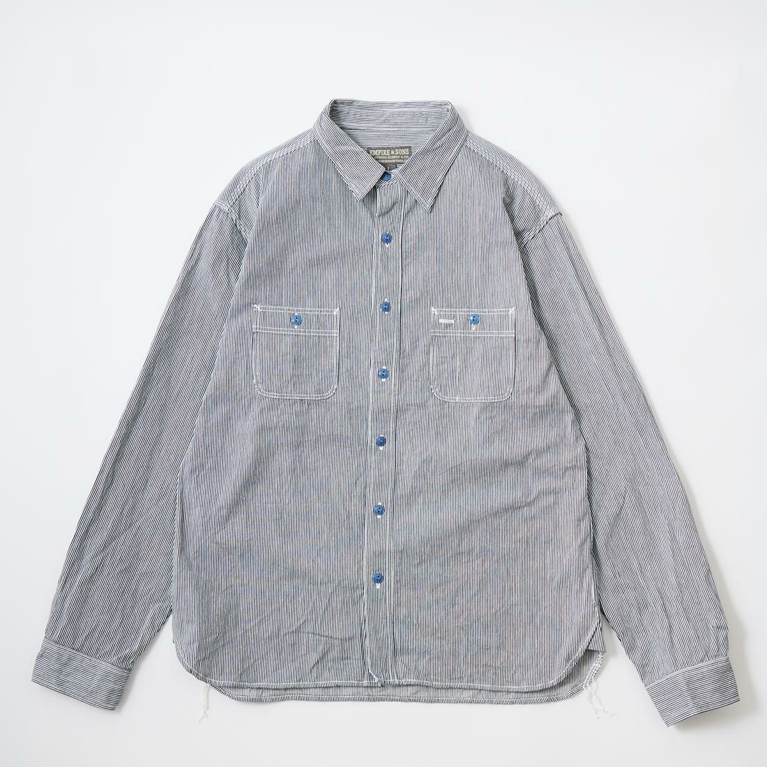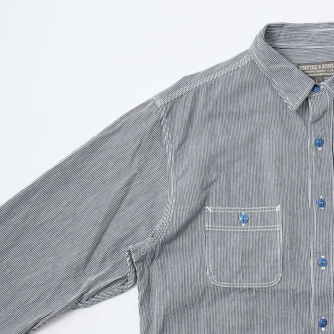 他の画像を見る ワークシャツ オーガニックコットン ヒッコリーストライプ 日本製 EMPIRE & SONS (エンパイア アンド サンズ) L/S USN STYLE WORK SHIRT ORGANIC COTTON HICKORY STRIPE - NAVY_WHITE 販売価格 ¥ 18,480 税込 お気に入りに登録する