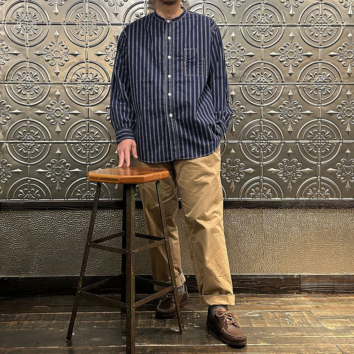他の画像を見る クラシック バンドカラーシャツ ストライプオックスフォード 日本製 国産 EMPIRE & SONS (エンパイア アンド サンズ) L/S CLASSIC BAND COLLAR SHIRT VINTAGE OXFORD - NATURAL/NAVY 販売価格 ¥ 18,480 税込 × 在庫切れ お気に入りに登録する