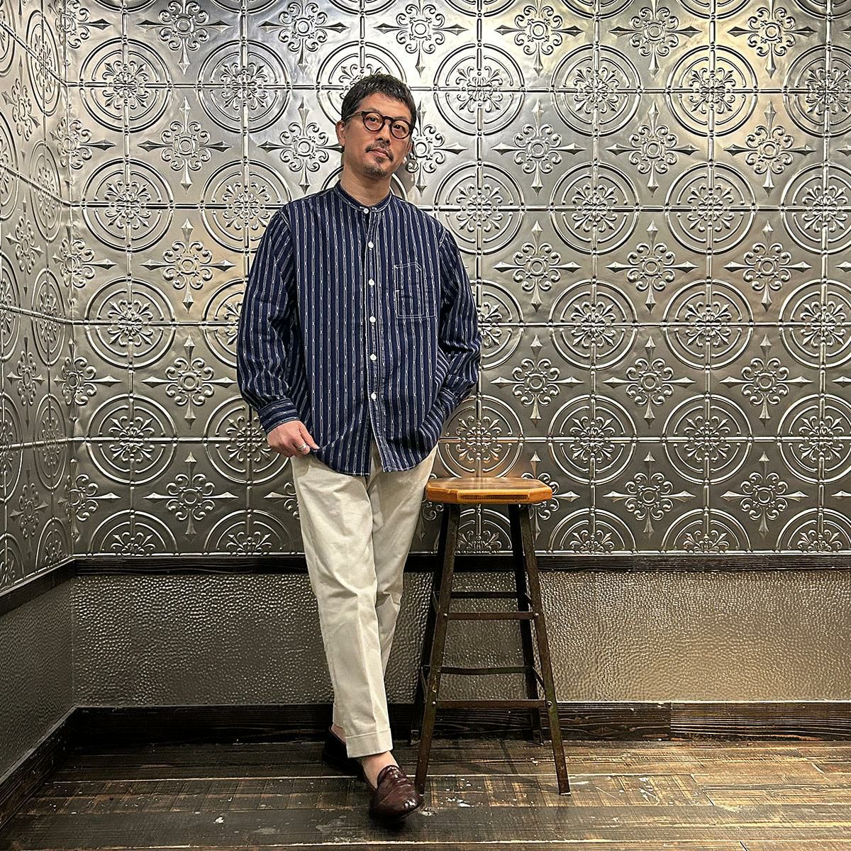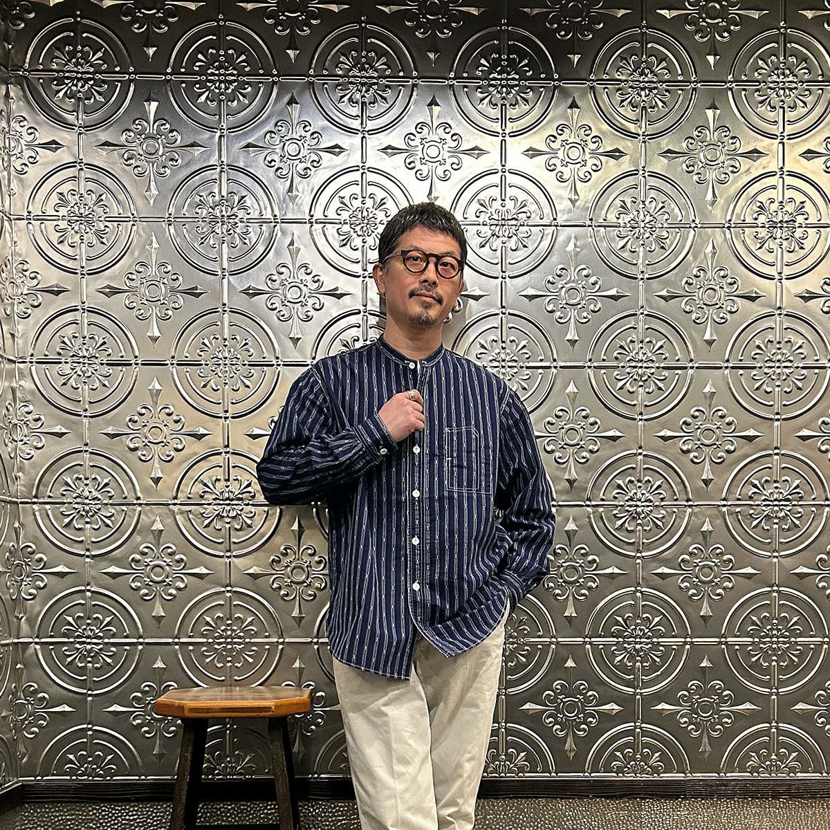 他の画像を見る バンドカラーシャツ MV ストライプ シーチング 日本製 POST OVERALLS (ポストオーバーオールズ) BAND COLLAR SHIRT MV STRIPE SHIRTING - INDIGO 販売価格 ¥ 33,000 税込 お気に入りに登録する