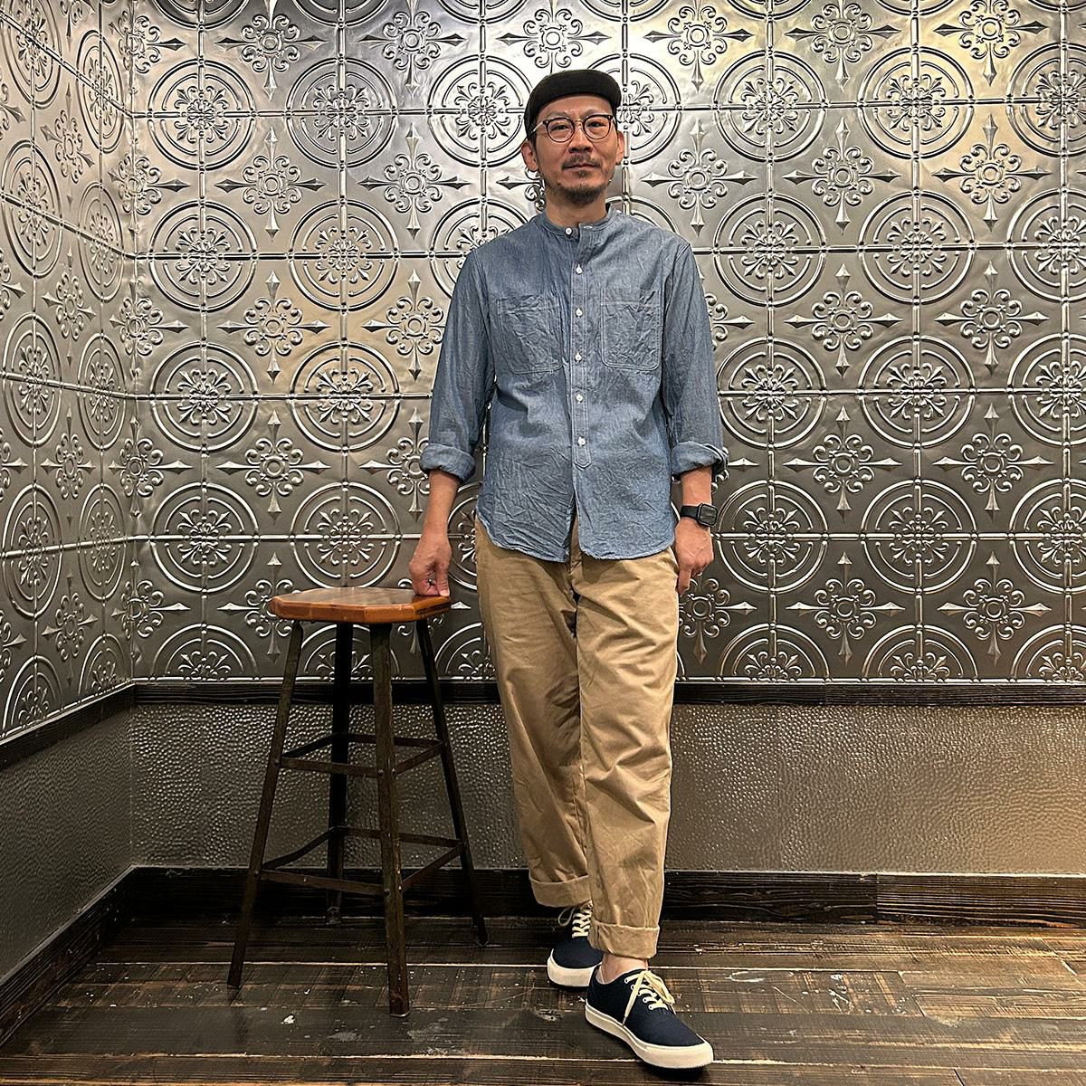 他の画像を見る クラシック バンドカラーシャツ 5オンス ヴィンテージシャンブレー 日本製 国産 EMPIRE & SONS (エンパイア アンド サンズ) L/S CLASSIC BAND COLLAR SHIRT 5oz VINTAGE CHAMBRAY - BLUE 販売価格 ¥ 18,480 税込 お気に入りに登録する