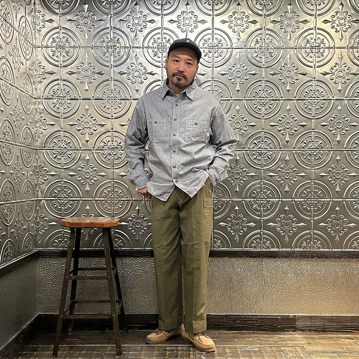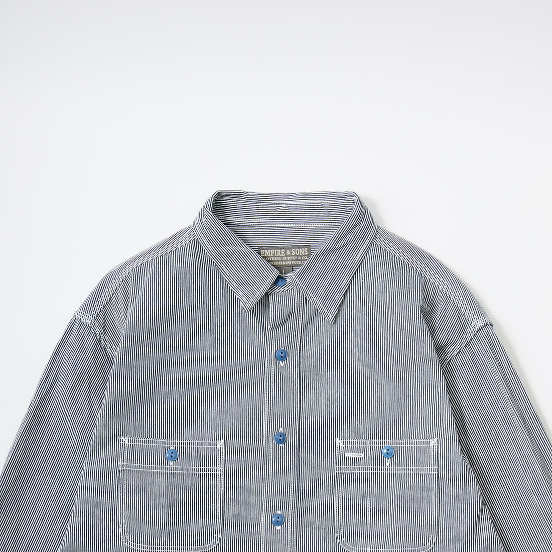 他の画像を見る 長袖 ハーフジップ ワークシャツ ヒッコリーストライプ メンズ 日本製 EMPIRE & SONS (エンパイア アンド サンズ) L/S HALF ZIP WORK SHIRT HICKORY STRIPE - NAVY 販売価格 ¥ 20,900 税込 お気に入りに登録する