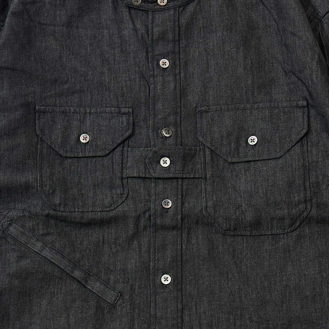 他の画像を見る 2025秋冬新作 RV038 バンデッドカラーシャツ コットンデニム ENGINEERED GARMENTS (エンジニアドガーメンツ) BANDED COLLAR SHIRT COTTON DENIM SHIRTING - BLACK 販売価格 ¥ 42,900 税込 お気に入りに登録する