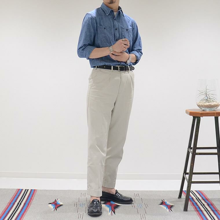 Double RL(ダブルアールエル)のCAMERON WS。ウエストに絞りのないボックスシルエット、トリプルニードル(3本針)による縫製とワークシャツらしいディテール。両胸にパッチポケット付き。キャッツアイボタン、マチ付きの裾がクラシカルなスタイルのワークシャツです。シャンブレークロスを使用しており経年変化も楽しんで頂ける永く愛用できる1着です。