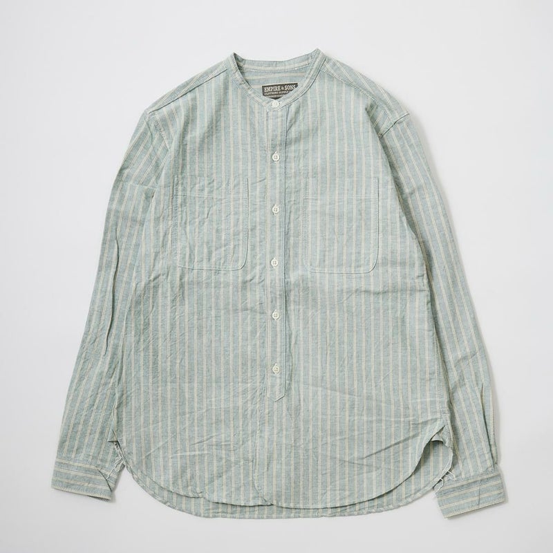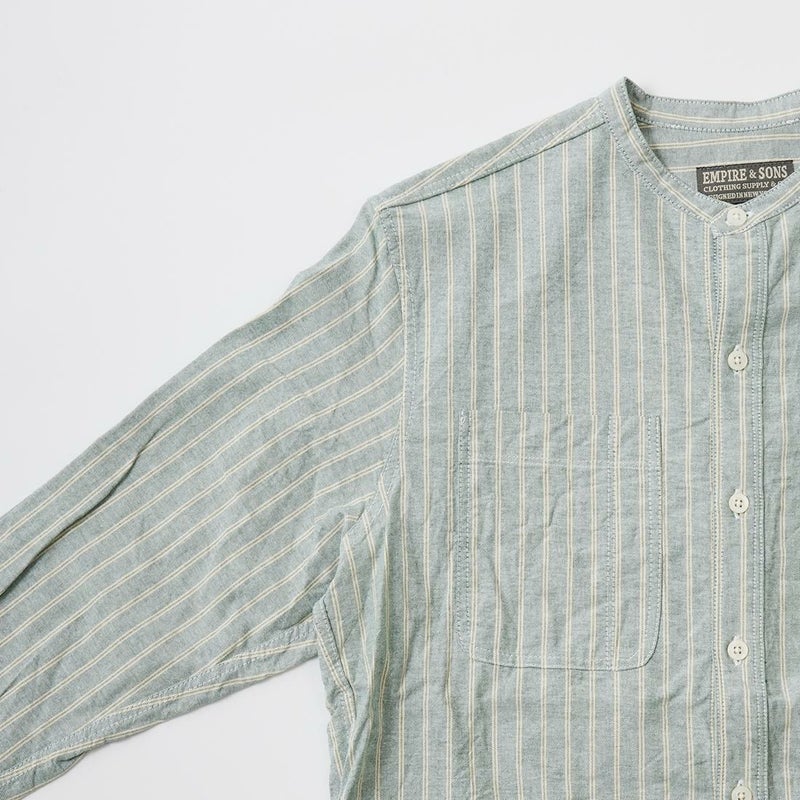 スタッフによる商品紹介ブログ - [ 【EMPIRE&SONS エンパイア アンド サンズ】シャンブレーの次はコレ。ストライプ柄のバンドカラーシャツ。 ]