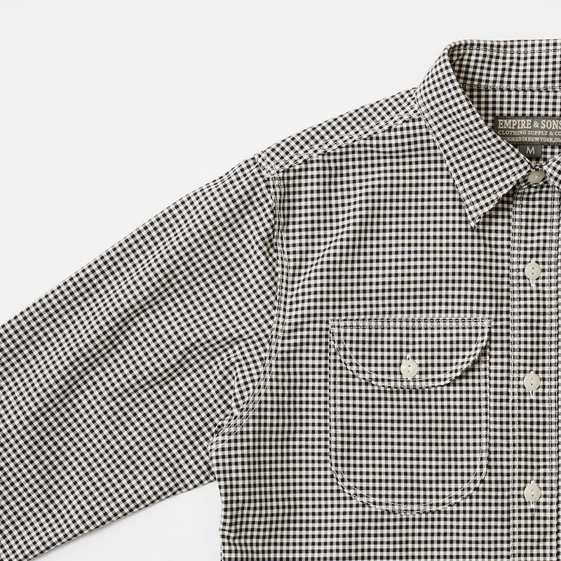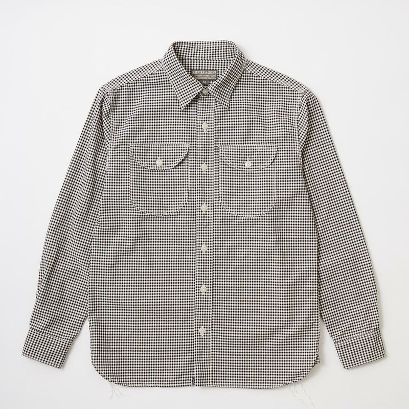 EMPIRE & SONS (エンパイア アンド サンズ) L/S UTILITY WORK SHIRT ORGANIC COTTON OXFORD CANVAS - 11 WHITE GINGHAM CHECK