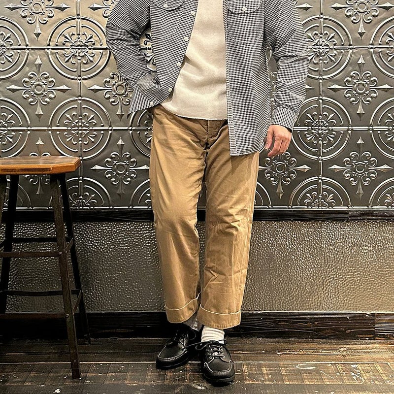 アメリカ、ニューヨークを拠点とするブランドEMPIRE & SONS(エンパイア アンド サンズ)。 ニューヨークを拠点に拘りのコレクションを展開。ブランドコンセプトは「ナチュラルフィット」と「深み」。 生地の特性に合ったデザイン、絶妙なコントラストステッチ、各アイテムの特性に合うソーイングマシーンを使った様々な縫製、手作業による洗いや乾燥といった仕上げ、それら工程の一つ一つに時間と手間をかけることでアイテムに「深み」を出しています。 全てのアイテムのフィッティングは体に自然にフィットするように計算されたシルエット。着込んでいく事によってその人の体型にフィットしてく過程も「ナチュラルフィット」たる所以です。これこそがブランドコンセプトに掲げている「ナチュラルフィット」です。 縫製はRRL (ダブルアールエル)やJ.CREW(ジェイクルー)、RAG&BONE(ラグ アンド ボーン)などのアメリカでの生産を請け負っているファクトリーなどで縫製。 生地にはアメリカを代表するコーンミルズ社の世界最古のデニム工場で織られるSAGE GREEN OAK(セージグリーンオーク)のデニムや現在も軍で使われている生地を使用するなど素材にも拘っています。縫製や生地、細部のパーツに至るまで妥協しない物作りをするブランドです。 現在はニューヨークのショーへの出展をしたり、雑誌などに取り上げられ世界各国の有名セレクトショップからも注目が高まっています。
