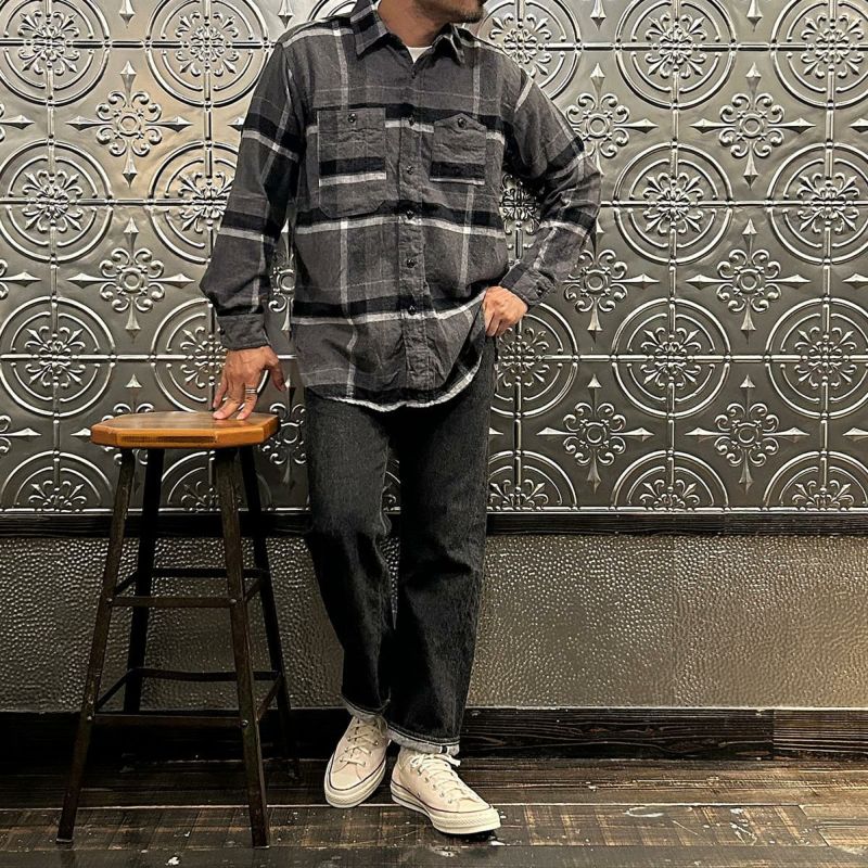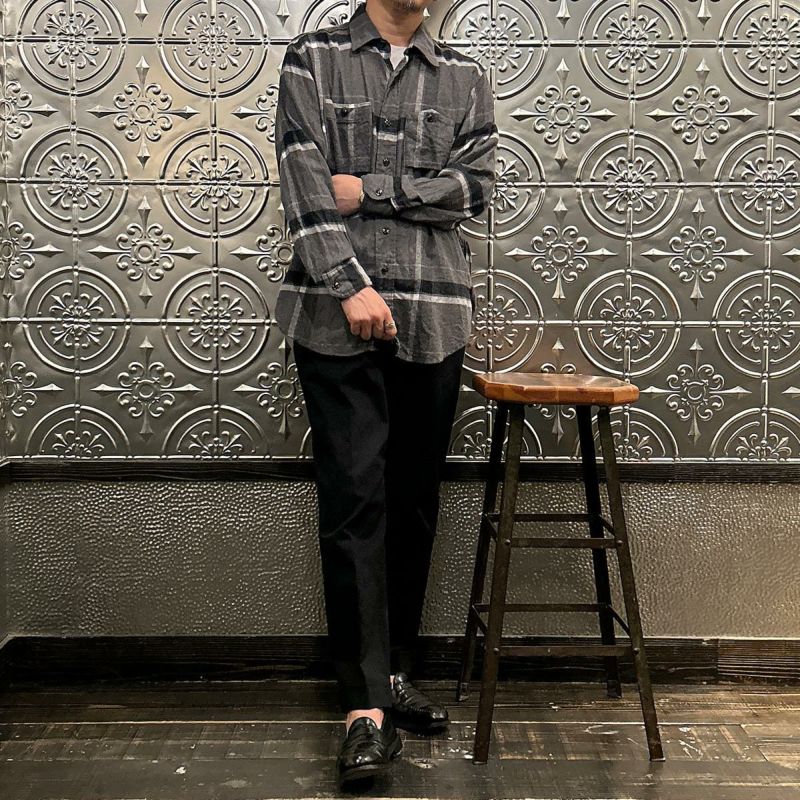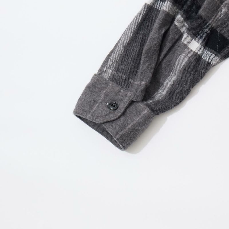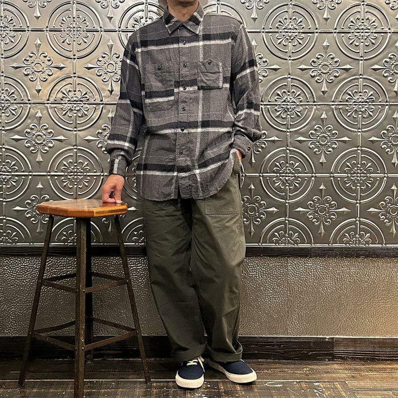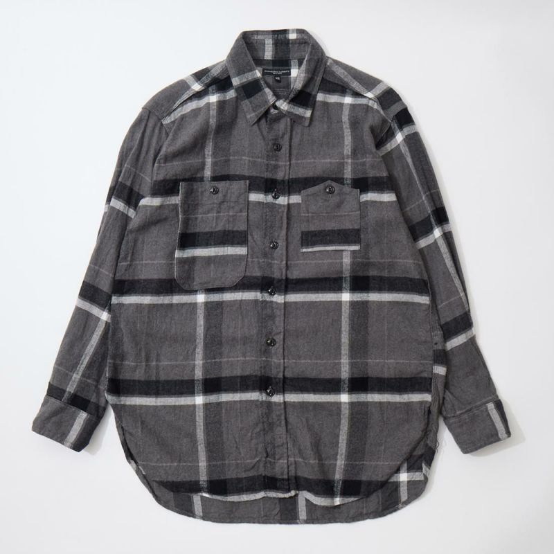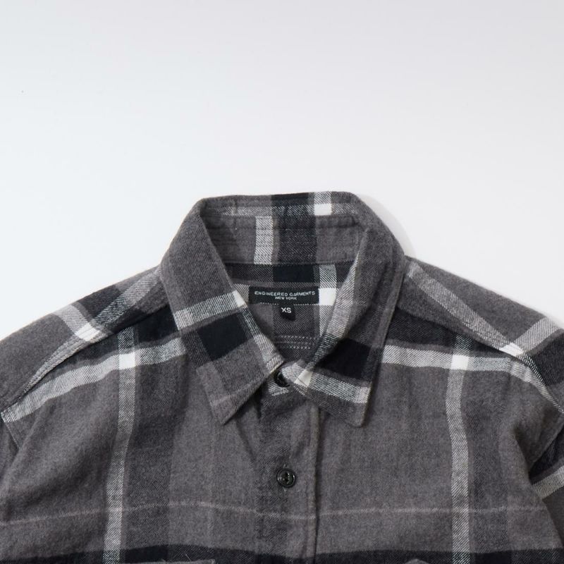 ENGINEERED GARMENTS(エンジニアド ガーメンツ)のWORK SHIRT COTTON BRUSHED BIG PLAID。肩や袖、脇はトリプルニードルで縫製され、肘の当て布やサイドのガゼット、カンヌキステッチなどワークなディテールがふんだんに盛り込まれている定番シャツ。左右非対称の胸ポケット。素材は温かみのあるコットンフランネル。