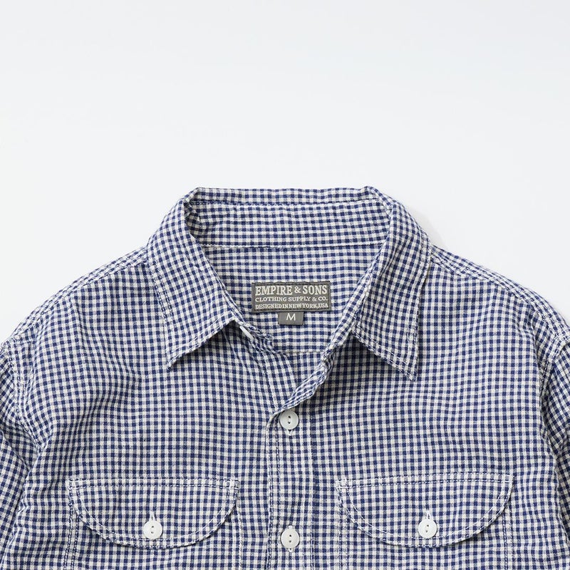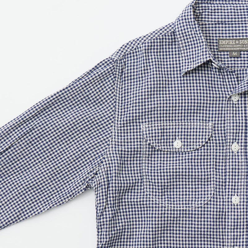 EMPIRE & SONS (エンパイア アンド サンズ) L/S UTILITY WORK SHIRT COTTON LINEN GINGHAM CHECK - BLUE
