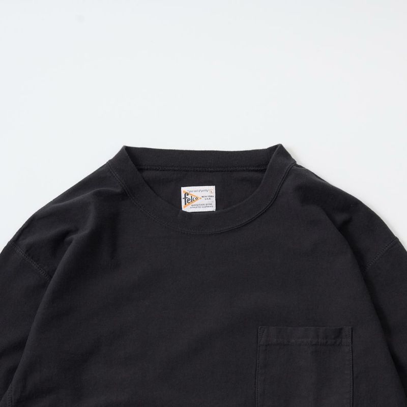 5. FELCO (フェルコ) L/S INVERSE WEAVE CREW NECK POCKET T 7oz 18 SINGLE JERSEY - BLACK