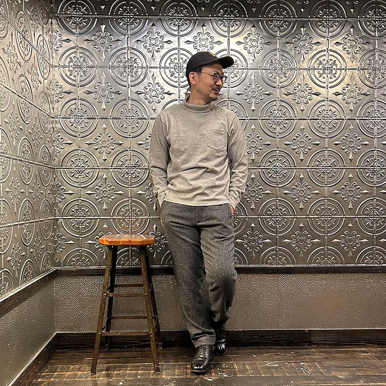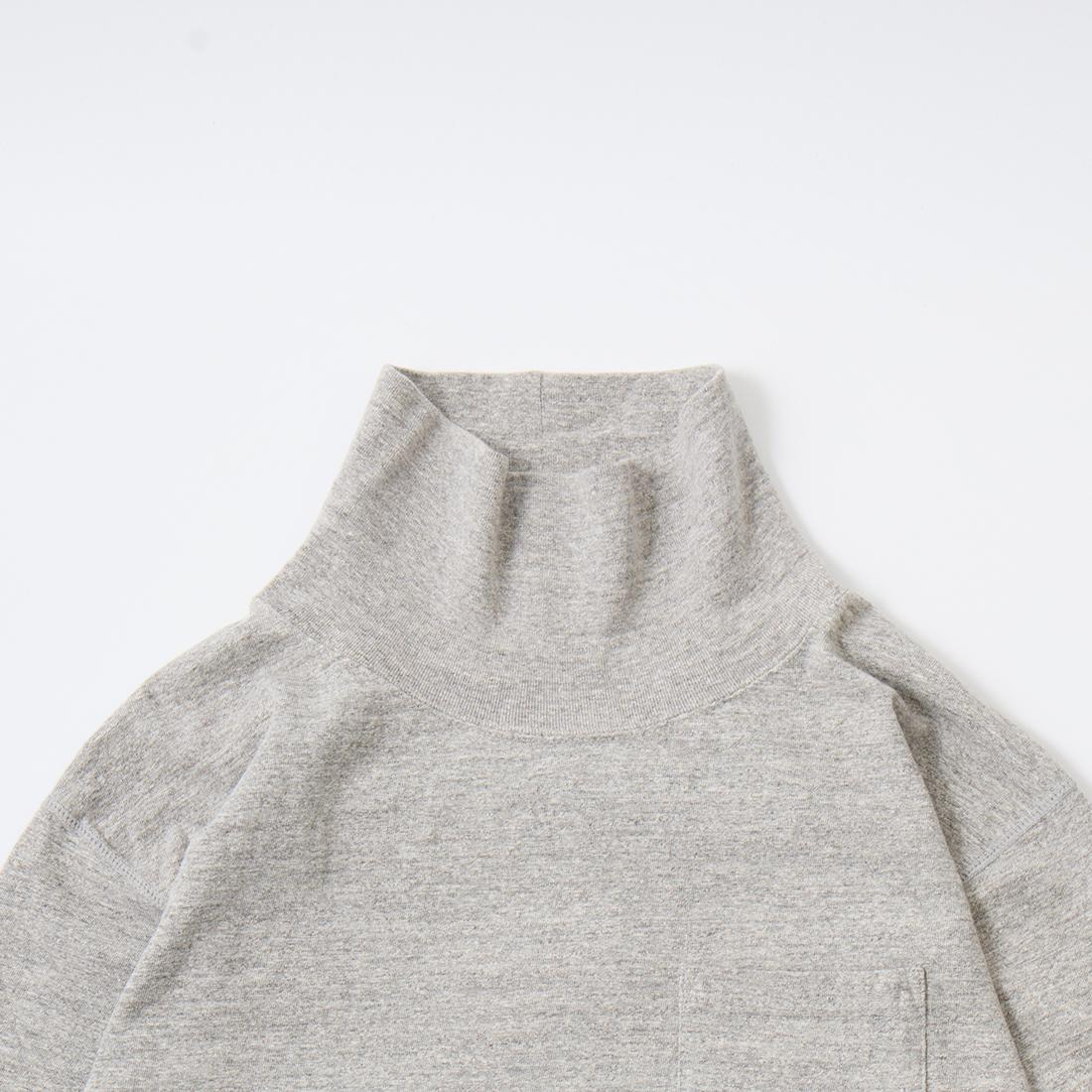 FELCO(フェルコ)のL/S TURTLE NECK POCKET T 7oz 18 SINGLE JERSEY。タートルネックの高さや幅が良い塩梅の雰囲気のある長袖Tシャツ。襟元や胸のポケット、リブ付きの袖口が特徴的なディテール。アメリカブランドらしいボックスシルエットで程良いゆとりがあり、一枚での着用は勿論ですがインナーとしても活躍。7オンスのタフな生地で着倒しても型崩れしにくいデイリーに着用して頂ける1着。