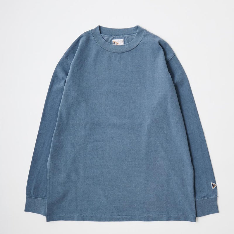 ピグメント加工 長袖ハイクルーネック 7オンス シングル ジャージー 日本製
