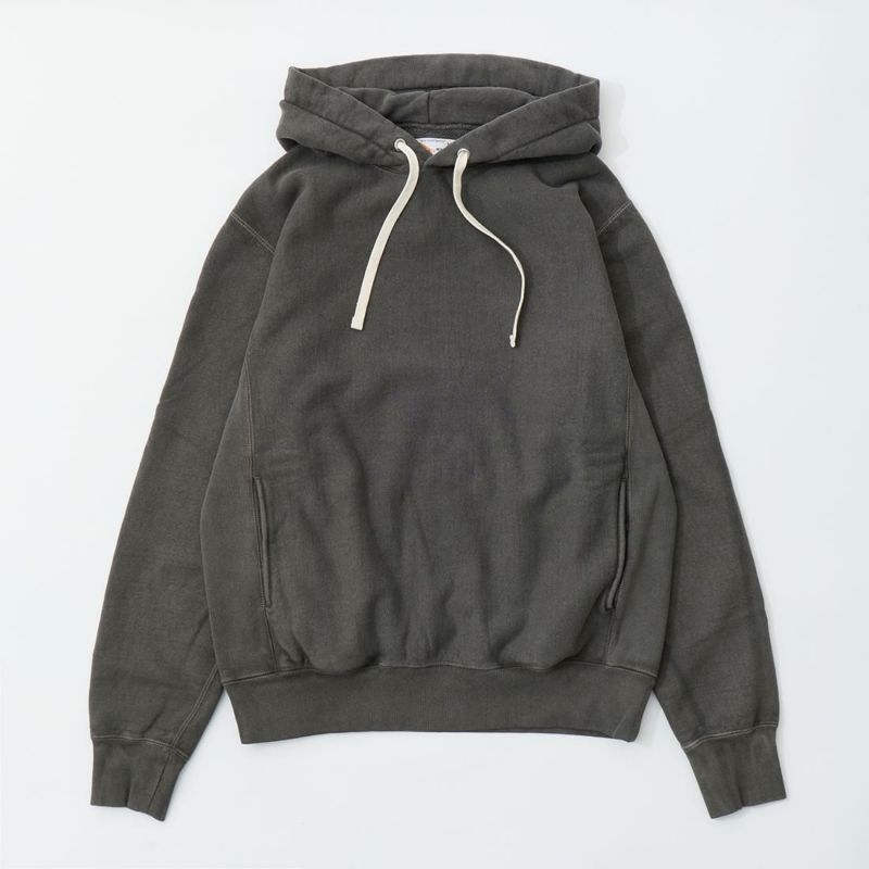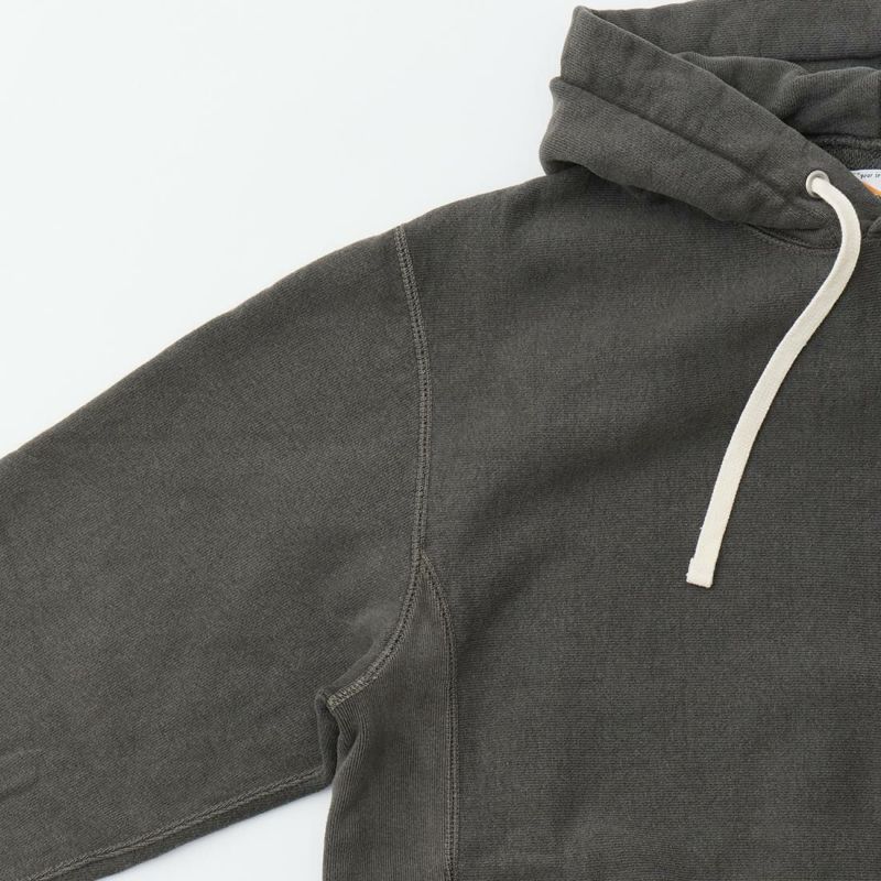 FELCO(フェルコ)の16oz TERRY CLASSIC FIT INVERSE WEAVE SWEAT HOODED PULLOVER。しっかりとした生地感の16オンスのフレンチテリー(裏起毛していないスウェット生地)を使用したプルオーバーパーカー。生地を横向きに使用することで縦縮みを軽減し、サイドリブが横縮み防止と動きやすさを実現したインバースウィーブを仕様。ガシガシ着倒してもへこたれないタフな1枚。袖と裾のリブはやや長めに設定されたヴィンテージを彷彿させるディテール。腰部分に装備された手の入れやすいハンドウォーマーポケットもポイント。従来のモデルよりも全体的にゆとりを持たせたクラシックフィット。ストレスのない着用感のスウェット。