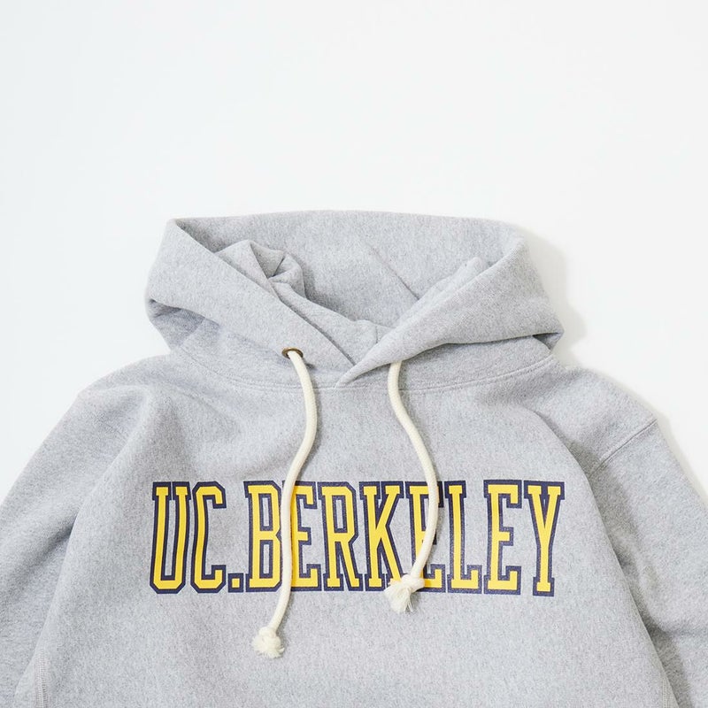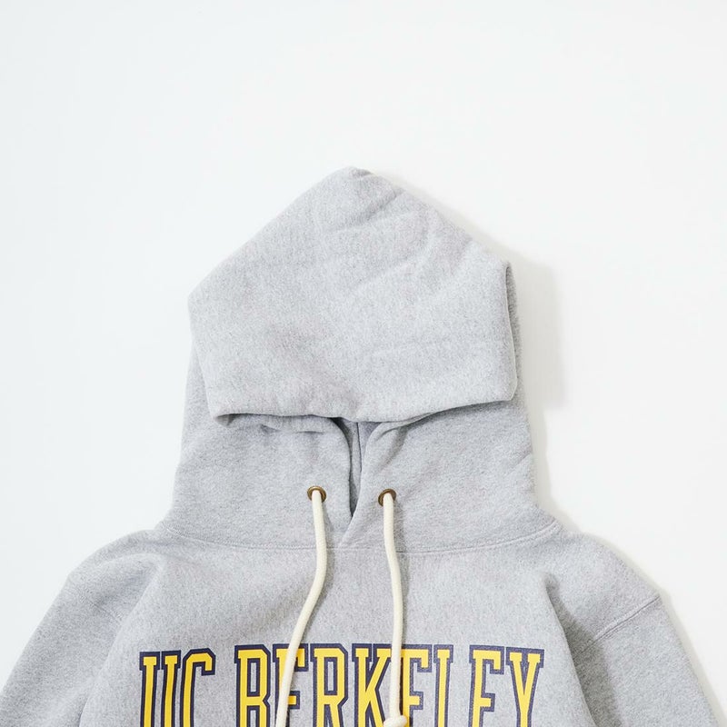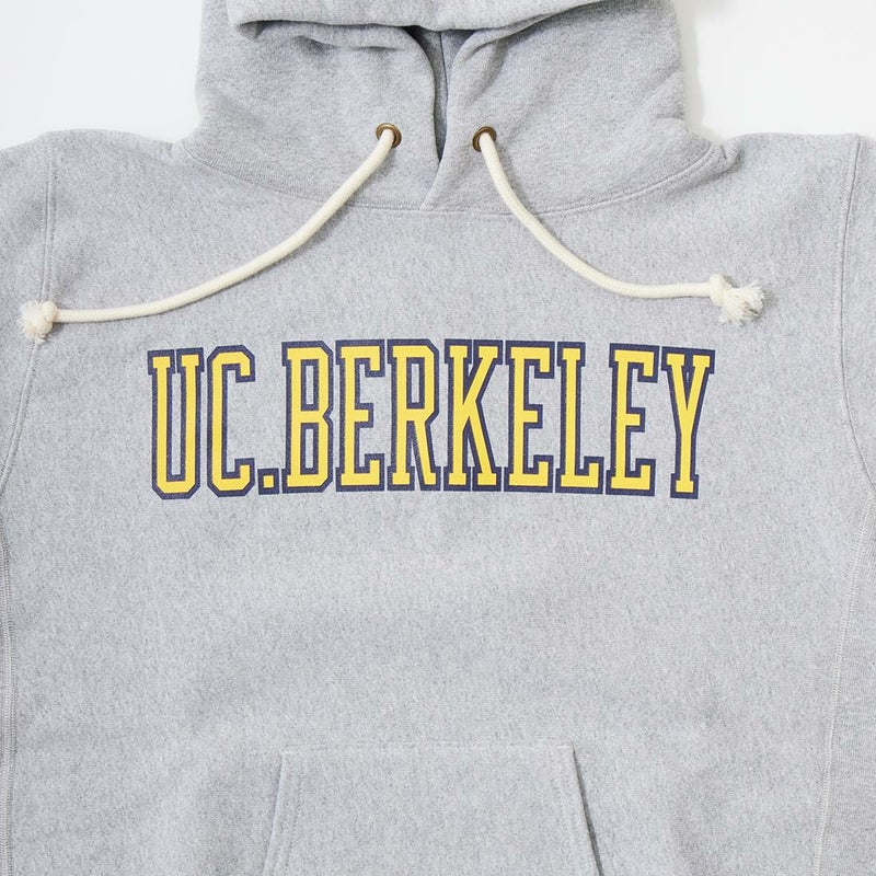 CHAMPION(チャンピオン)のREVERSE WEAVE HOODED SWEAT SHIRT U.C.BERKELEY。スウェットの原点であり名作のリバースウイーブのプルオーバースウェットパーカー。リバースウィーブとは生地を横使いすることで縦縮みを軽減し、脇にはリブを付けて横縮みも防止した仕様のこと。スウェットの弱点だった洗いによる縮みの問題を見事に解決したうえに、両脇のサイドアクション・リブにより動きやすさもプラスされています。襟ネームのタグには1970年代モデルの「赤単タグ」(赤単色タグ)を採用。肉厚の生地が着込む程に馴染み長く愛用して頂けるスウェットパーカー。こちらはカリフォルニア大学バークレー校のカレッジロゴがプリントされた1着。