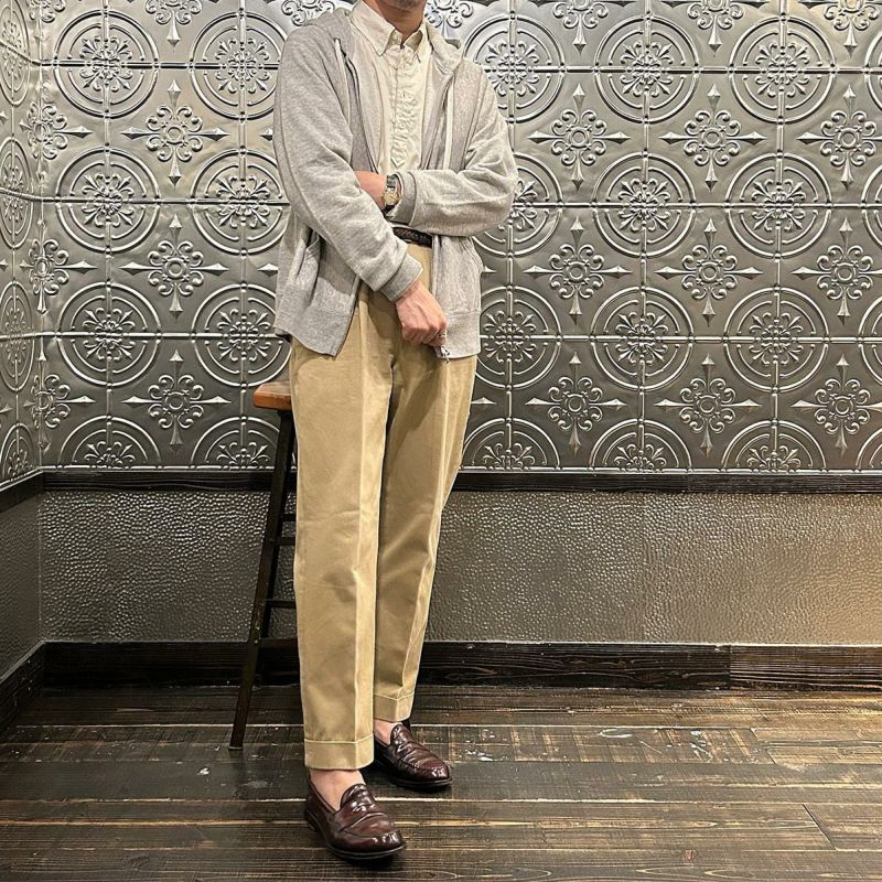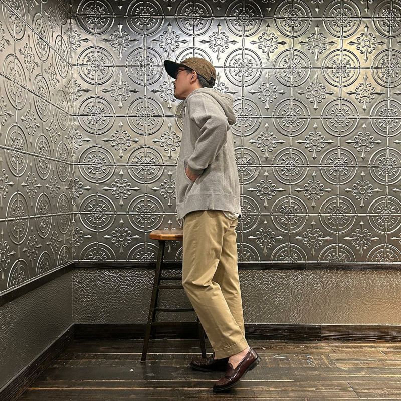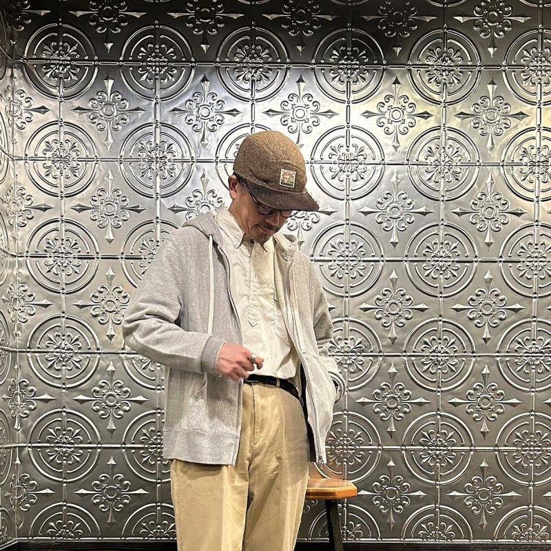 FELCO(フェルコ)のCLASSIC FIT INVERSE WEAVE FULL ZIP PARKA KANGAROO POCKET 10oz FRENCH TERRRY。10オンスのフレンチテリー(裏起毛していないスウェット生地)素材を使用したフルジップパーカー。生地を横向きに使用することで縦の縮みを軽減し、サイドリブが横縮み防止と動きやすさを実現したインバースウィーブの仕様。ダブルジップで着易く、正面にはカンガルーポケット付き。アウターとしては勿論、重ね着にも使い易いウェイトで、春・秋・冬と幅広く使える汎用性の高い1着。