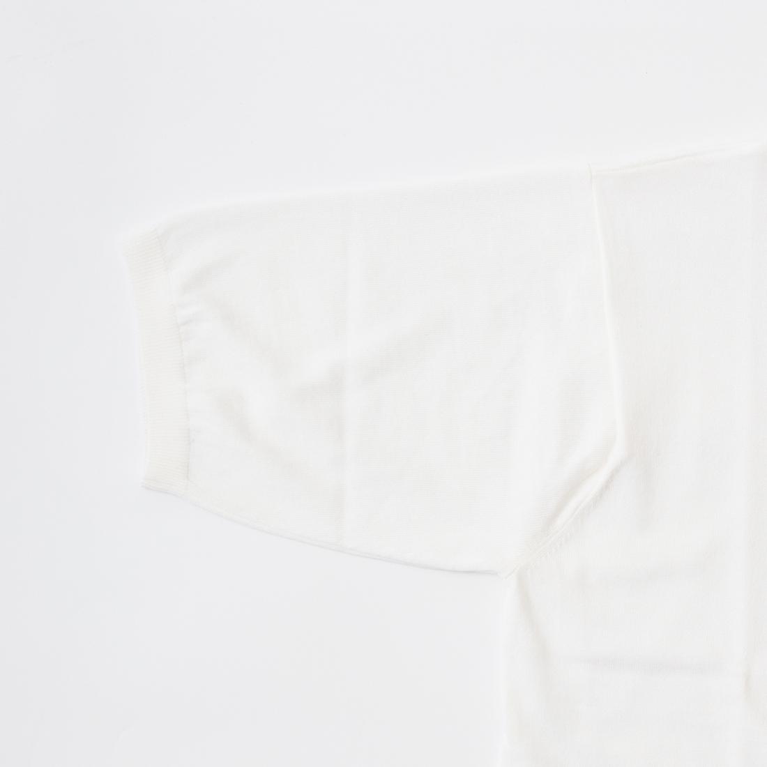 D.C. WHITE(ディーシーホワイト)のCLASSIC RUGGER KNIT。伝統的なラグビージャージーの構造をモチーフにしたラガーニットポロ。ラガーシャツらしいホワイトで統一された襟。フロントは3つボタン。袖口はリブ仕様。やや広めの身幅、短めの着丈のリラックス感のあるボックスシルエット。素材はサマーウールとポリエステルを交撚したハイブリッド糸を採用。サマーウール特有の通気性と弾力、そしてポリエステルの柔軟性と控えめな光沢感を併せ持ち、肌離れの良いドライなタッチと軽さが特徴。手洗い可能なイージーケア仕様という点もポイント。