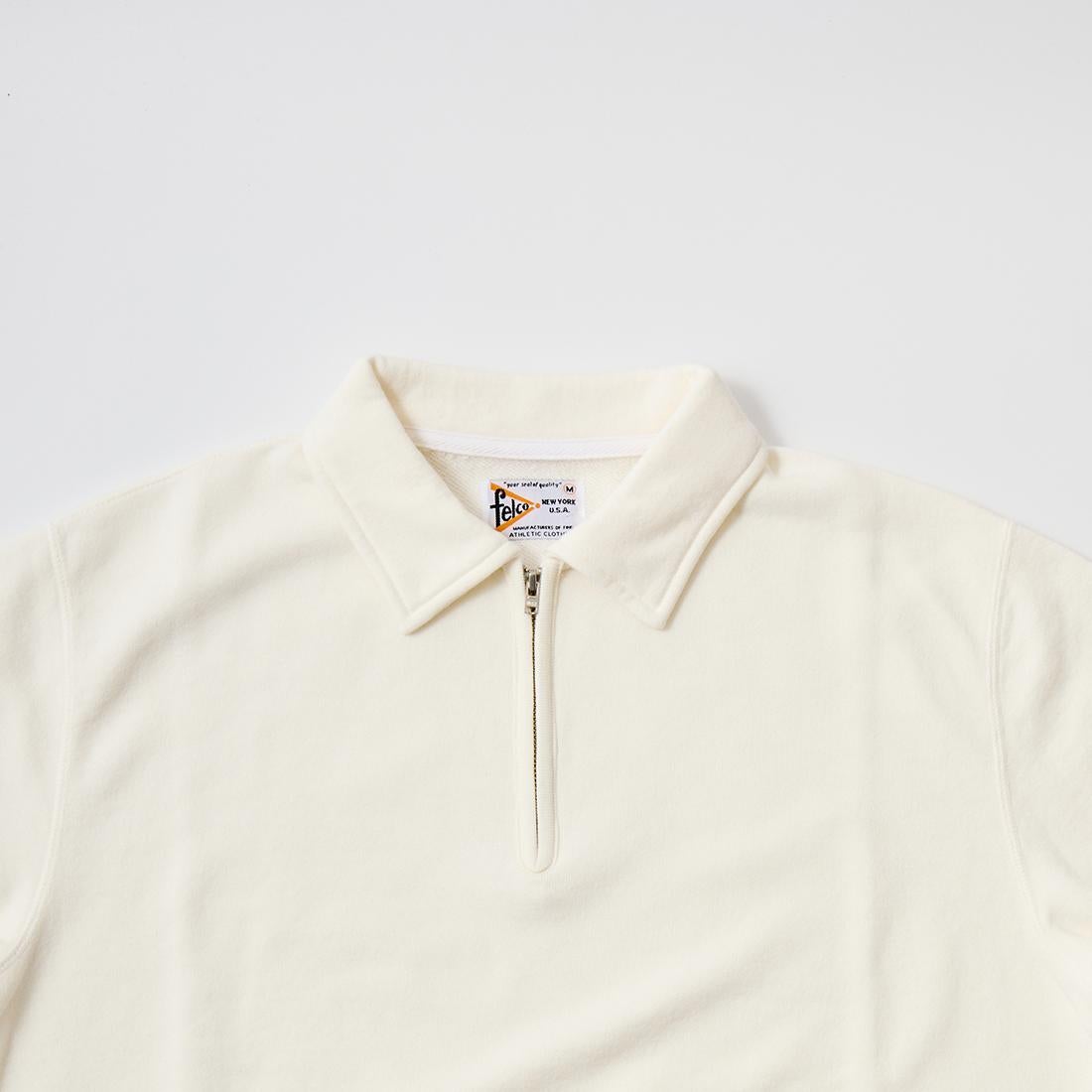 他の画像を見る メンズ 半袖 ジップ ベースボールカラー スウェット 10オンス 日本製 FELCO (フェルコ) S/S ZIP BASEBALL COLLAR SWEAT 10oz LT WEIGHT FRENCH TERRY - OFF WHITE ¥ 13,860 税込 お気に入りに登録する