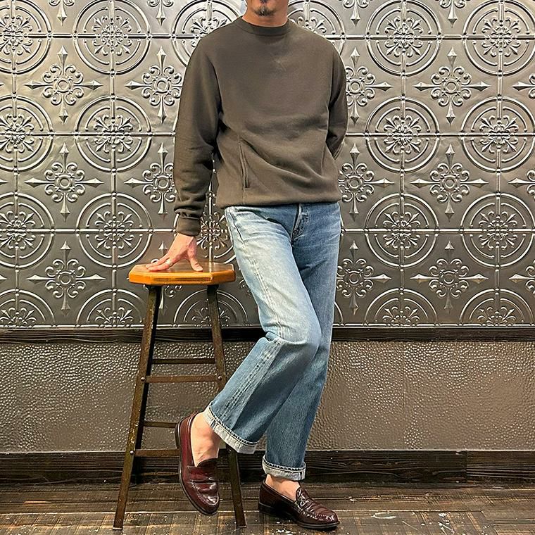 FELCO(フェルコ)のヴィンテージ感たっぷりのクルーネックスウェットのデリバリーです。両Vガゼットの襟元や長めのリブがヴィンテージスウェットを彷彿させる1着です。襟元に特徴的なデザインの入るアイテムなのでインナーとして着用したときもスタイリングのワンポイントになってくれます。しっかりとした生地感なので気兼ねなく着用出来るのでデイリーに使っていただける1着です。サイズは176cm74kg程度でXLサイズがインナーでもアウターでも使える丁度良いサイズになります。