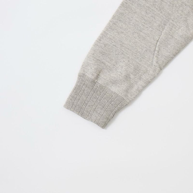 170センチ68キロやや肩幅広めの私の体型でMサイズの着用で個人的には丁度良いサイズ感だと思いましたね。身幅、アームホールとも若干広めのつくり。着丈はリブ仕様の為やや長めです。どちらからというとジャストで着るというよりかは、程よくゆとりのあるぐらいで着て頂くサイズ感。生地は12オンスと程よいコシのある生地感。春秋ぐらいの涼しい時期には単品使いで、寒い冬時期にはアウターのインナー使いとしても対応できる着回しの良い1着。アメリカらしい要素を取り入れたスポーティーなショールカラーのプルオーバー。今までありそうでなかったアイテムです。