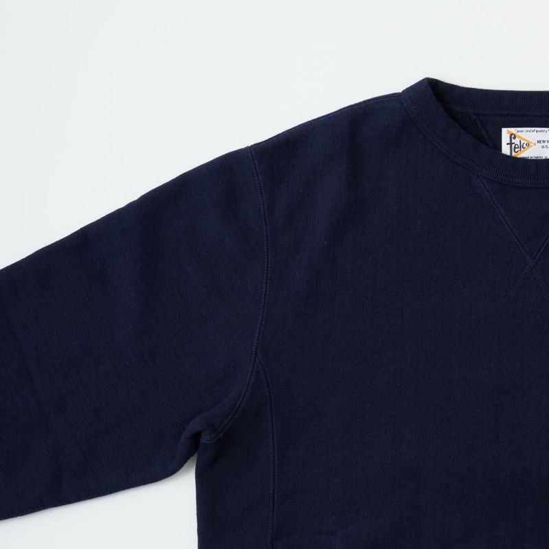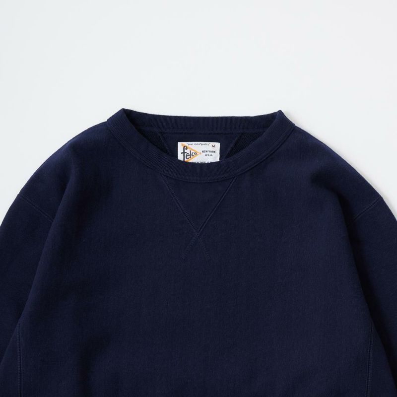 FELCO (フェルコ) 16oz TERRY CLASSIC FIT INVERSE WEAVE DOUBLE V GUSSET SET IN CREW SWEAT W/SLASH POCKET - TWISTED GREY