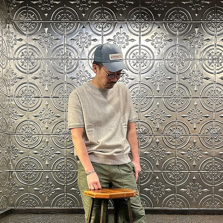 FELCO(フェルコ)の10oz LT WEIGHT FRENCH TERRY S/S INVERSE WEAVE SWEAT CLASSIC FIT。10オンスのフレンチテリー(裏起毛していないスウェット生地)素材を使用したVガセット付の半袖クルーネックスウェット。生地を横向きに使用することで縦縮みを軽減し、サイドリブが横縮み防止と動きやすさを実現したインバースウィーブ仕様。裾はヴィンテージライクな長めのリブ仕様。従来のモデルよりも全体的にゆとりを持たせたクラシックフィット。ストレスのない着用感の半袖スウェット。