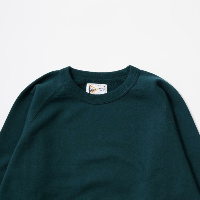7. FELCO (フェルコ) CLASSIC FIT RAGLAN BINDER CREW 12oz MD WEIGHT FRENCH TERRY - DK GREEN